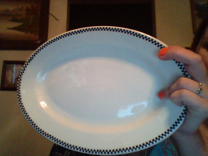 The platters are both white, with a black and white checkerboard type of border. I cannot find any pictures or information on these platters. Does anyone have any idea of an approximate value?