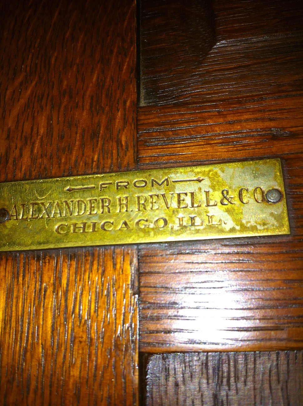 All I could find about this desk was online. I found a 1914 Chicago paper ad that sold desks like this one, but smaller, from the Revell Co. I read the story of how the company founder died from a fall from his 7th floor apartment in the Drake Hotel.