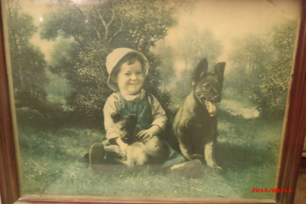 I have a print of a small boy with 2 Belgian Malinois dogs that appear to be a female and her pup. In the bottom right corner is the artist name, Alfred Guilloiz. Beneath his name is: a copyright symbol, then R.C. CO., N.Y. The bottom right corner has the number 1646.