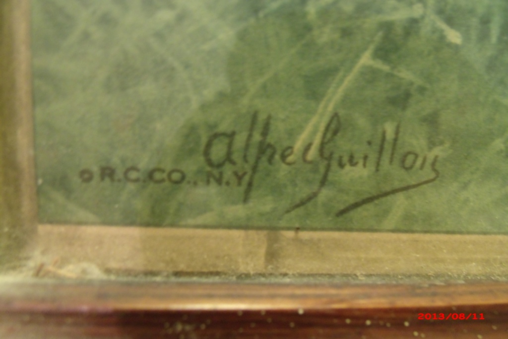 I have studied the artist, Alfred Guilloiz, to learn he was a maritime painter, living in Con Carceneau, France. He was an established, master painter when Picasso was just beginning. Alfred Guilloiz passed away in 1929.