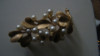 This is a very nice collectible piece. I believe it is most likely gilt sterling. Alfred was making similar pieces for Trifari during the mid 1940s. The stones are most likely moonstones. It is, however, impossible to say without it in person. If it is a sterling piece and not a lesser quality costume piece, which were also being procuded at the same time, it is worth $100-250 depending on how badly somone wants it at auction based upon previous auction records.