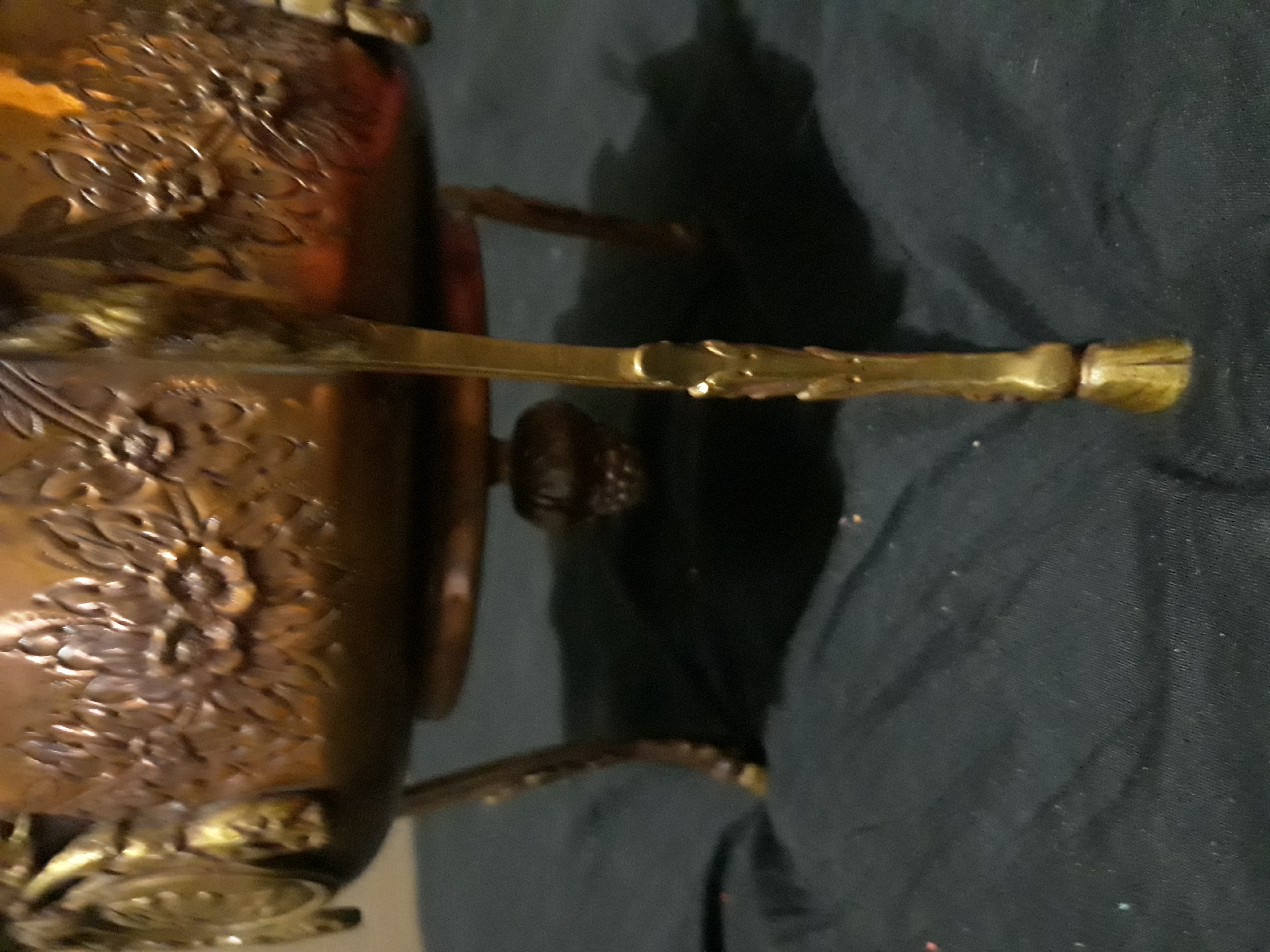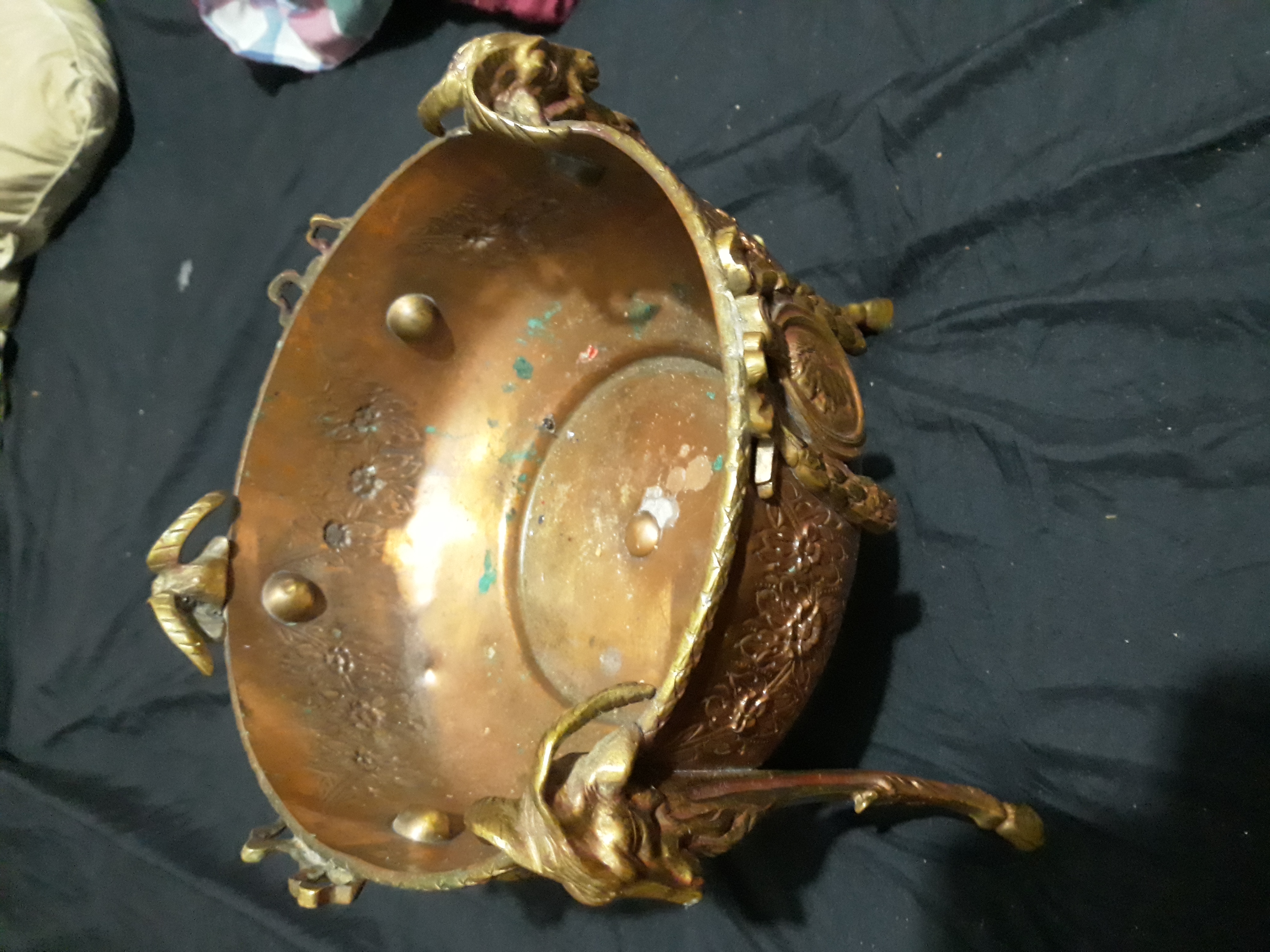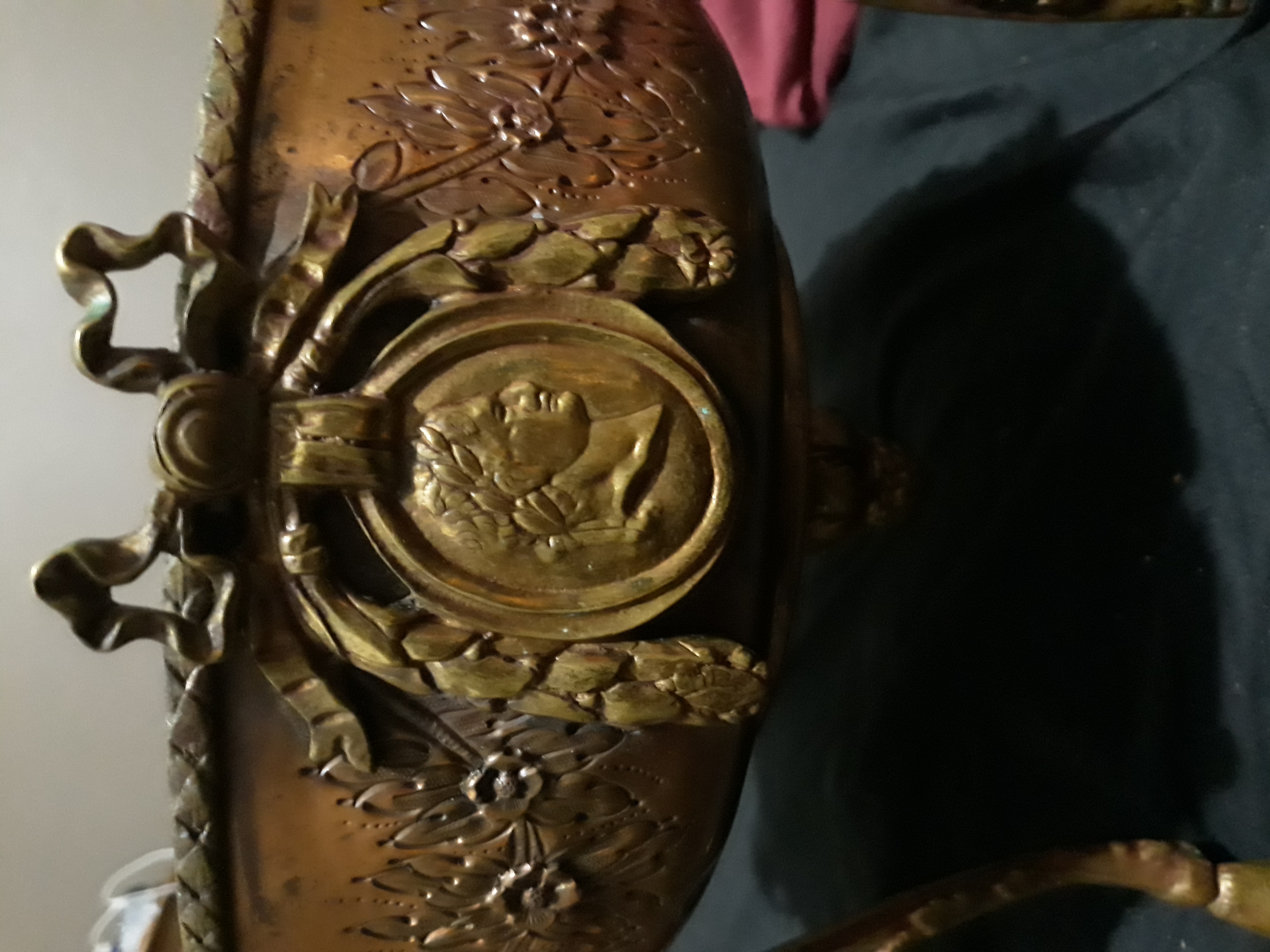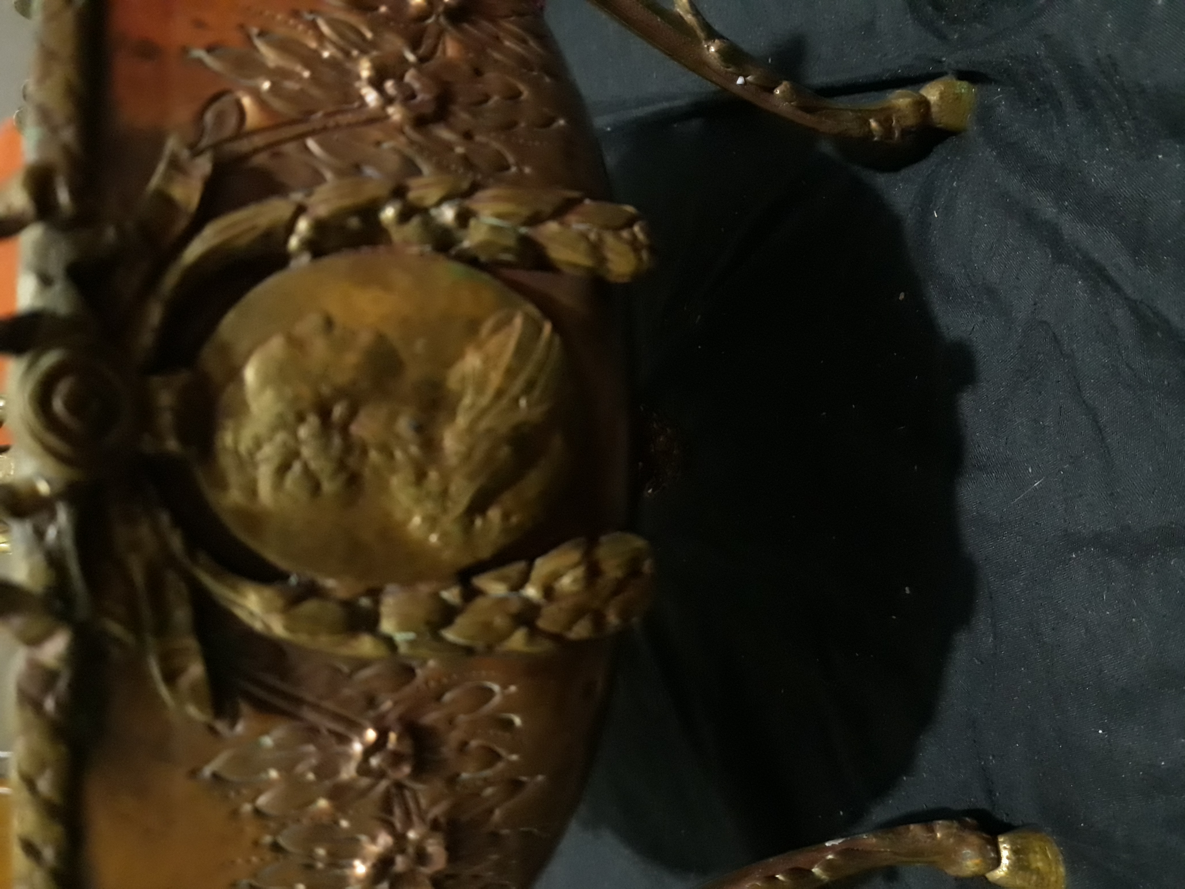 Well I think its brass? I have no idea where to even start with this thing. Its gorgeous and very detailed. I really want to know more about it.