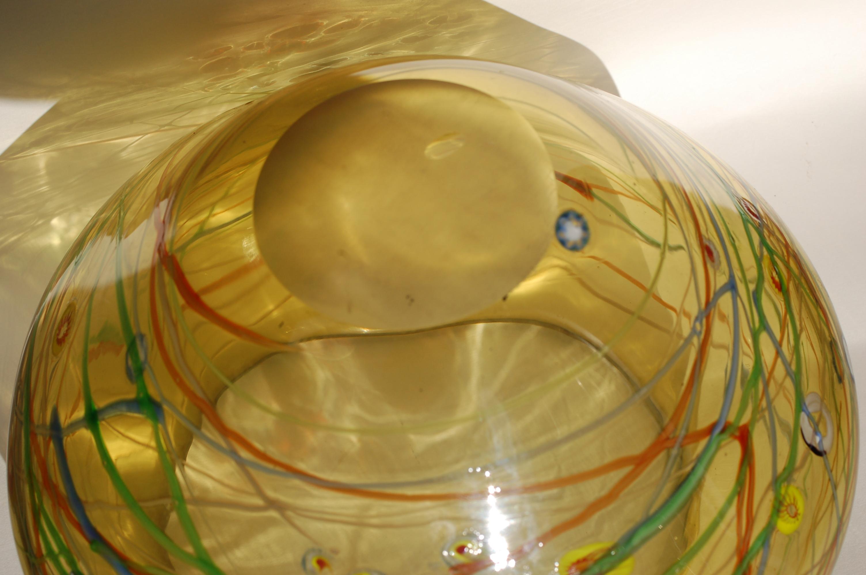 This is a thick glass bowl with lines and flowers(?) that stands 6" tall by 9" wide. There is no mark that I can find on the ground glass bottom. I would like to find out the age and manufacturer. Any idea even if you aren't sure is better than what I have at the moment
