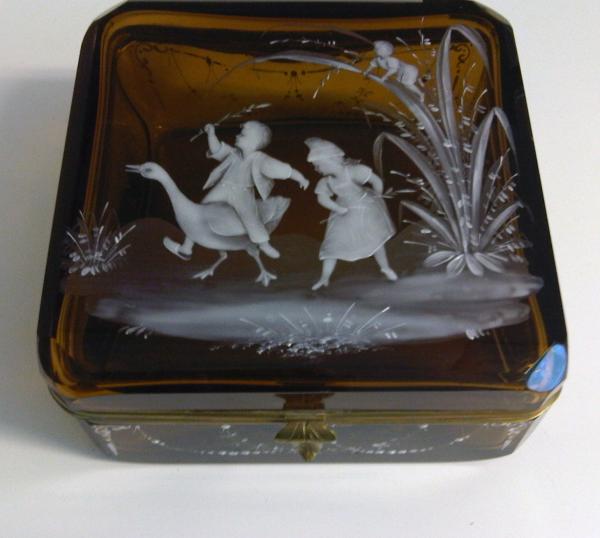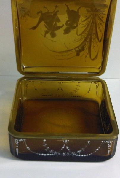 Re: Amber Glass Box with etched or painted detail in white