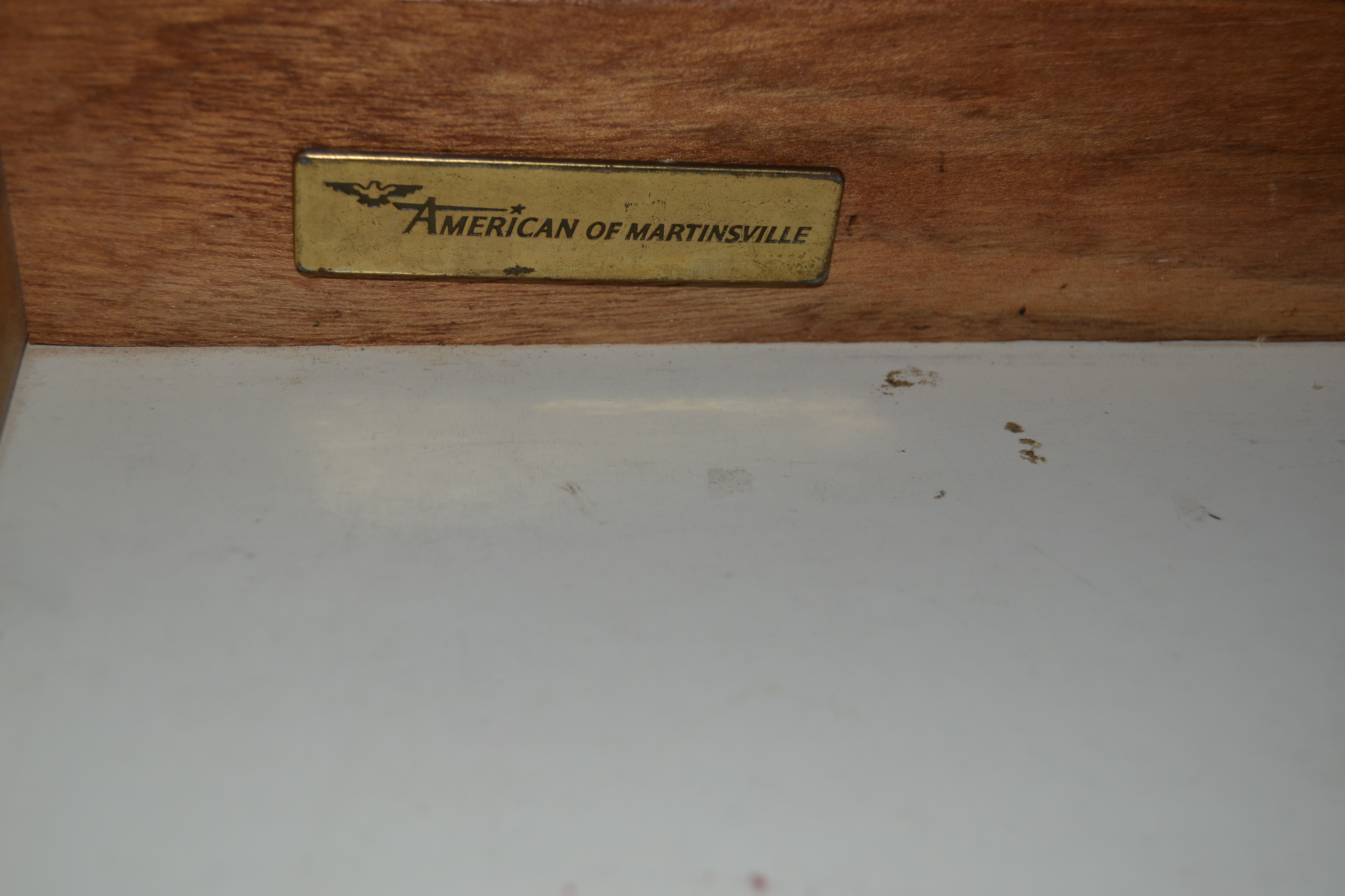 I have two American of Martinsville dressers. They are in great condition. The only thing is I changed out the handles. I know I should not of done that. The top of the one dresser is removable. Any help with the value is appreciated as I have no idea. Thanks