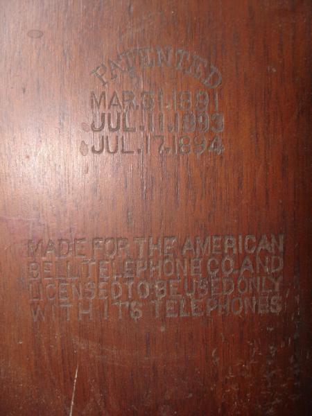 I have 2 very old wooden wall telephones. The have patent number with the newest being 1894 on both. Both have this statement "Mad for the American Bell Telephone Co and licensed to be used only with it's telephones. One has 4 dry cell batteries still inside of it.