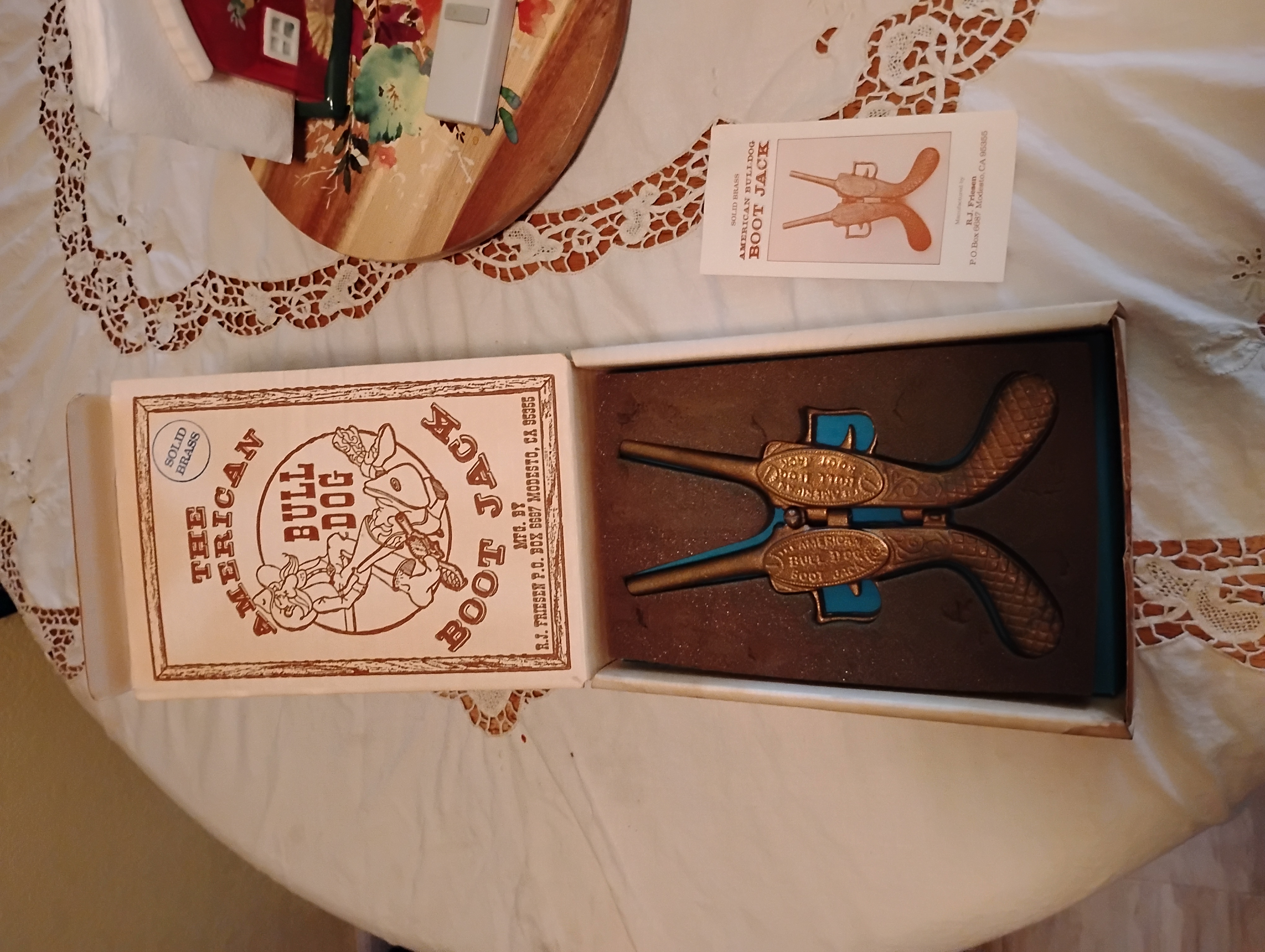 I have original pattoned very heavy mold to make American Bulldog Bootjack. My stepfather invented it. I also have 15 solid brass bootjacks, 5 are in originsl boxes also have pamphlets. Want to know value and where to sell.