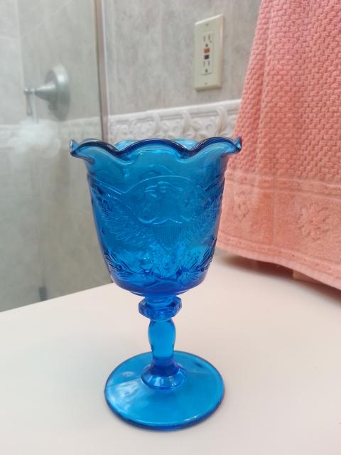 Blue wine glass with the american eagle on it. Got it at estate sale. Thank you.