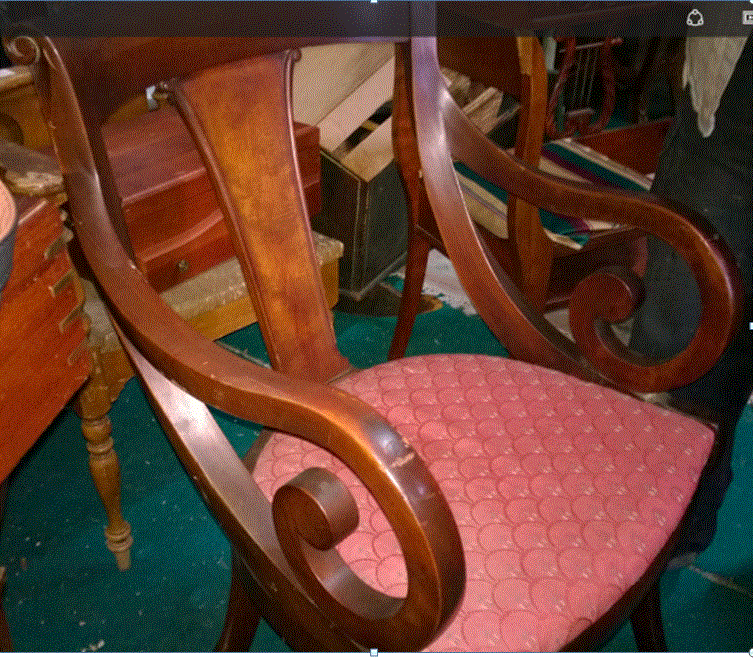 From what I can see in the images they are "Empire Revival" examples made after 1900. Most are made of maple and given a mahogany dye stain which is often difficult to remove or refinish properly. Chairs like this were factory made, but without a label are difficult to determine a maker for.