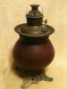 kerosene lamp brown with flowers. looks like 2 glass like globes.