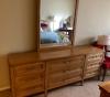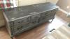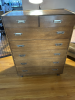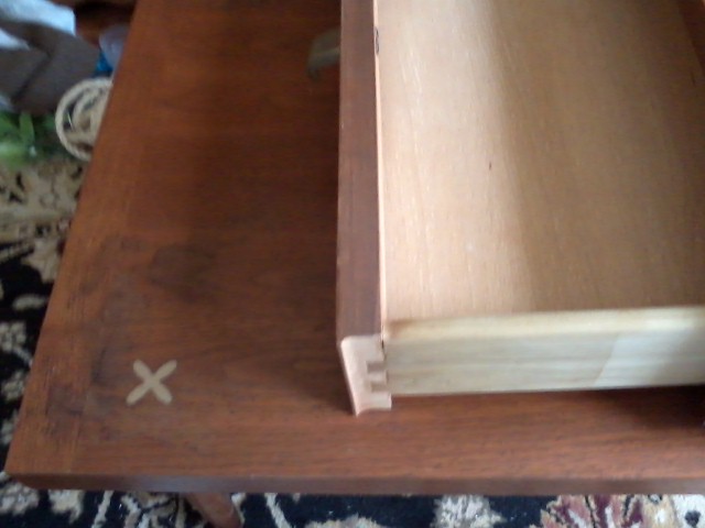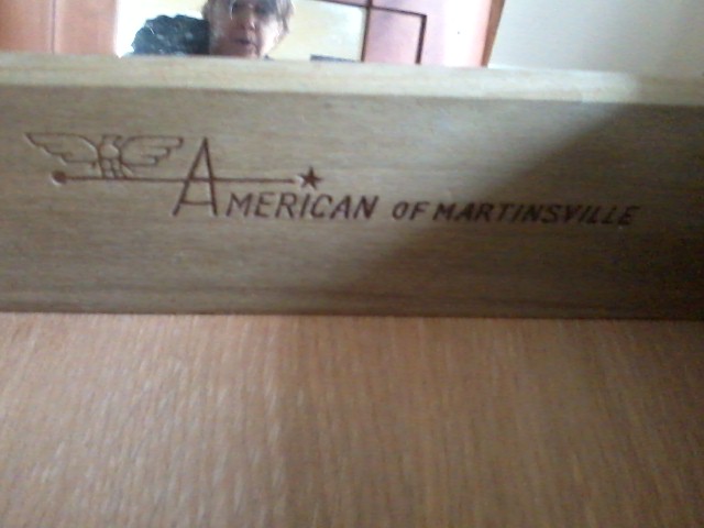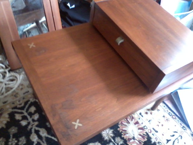 Cir 1960's American of Martinsville 2 tier side table with X inlays. Good condition. Cherry wood possibly. A few water spots on top.