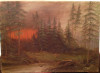 Well, the title just about says it all. It appears to be a work of American origin in the Modernist style. I don't believe the work is finished and there is no signature to be found. I think it's oil paint due to the hard gloss. The canvas is hand wrapped on stretcher bars and fastened with staples. Three of the bars are Grumbacher brand, and one is AncoBilt brand wooden stretcher bar. The work depicts a spring thaw of a mountainous creek with snow still on the ground. I really enjoy it, and I barely paid anything for it. It reminds me of Andy Warhol's paint by numbers style and his camofluage works. Obviously, I'll keep dreaming on that, LOL! This was purchased in Portland, Oregon if the work looks like someone you've seen in our neck of the woods? Thanks for looking, and keep hunting for treasure!