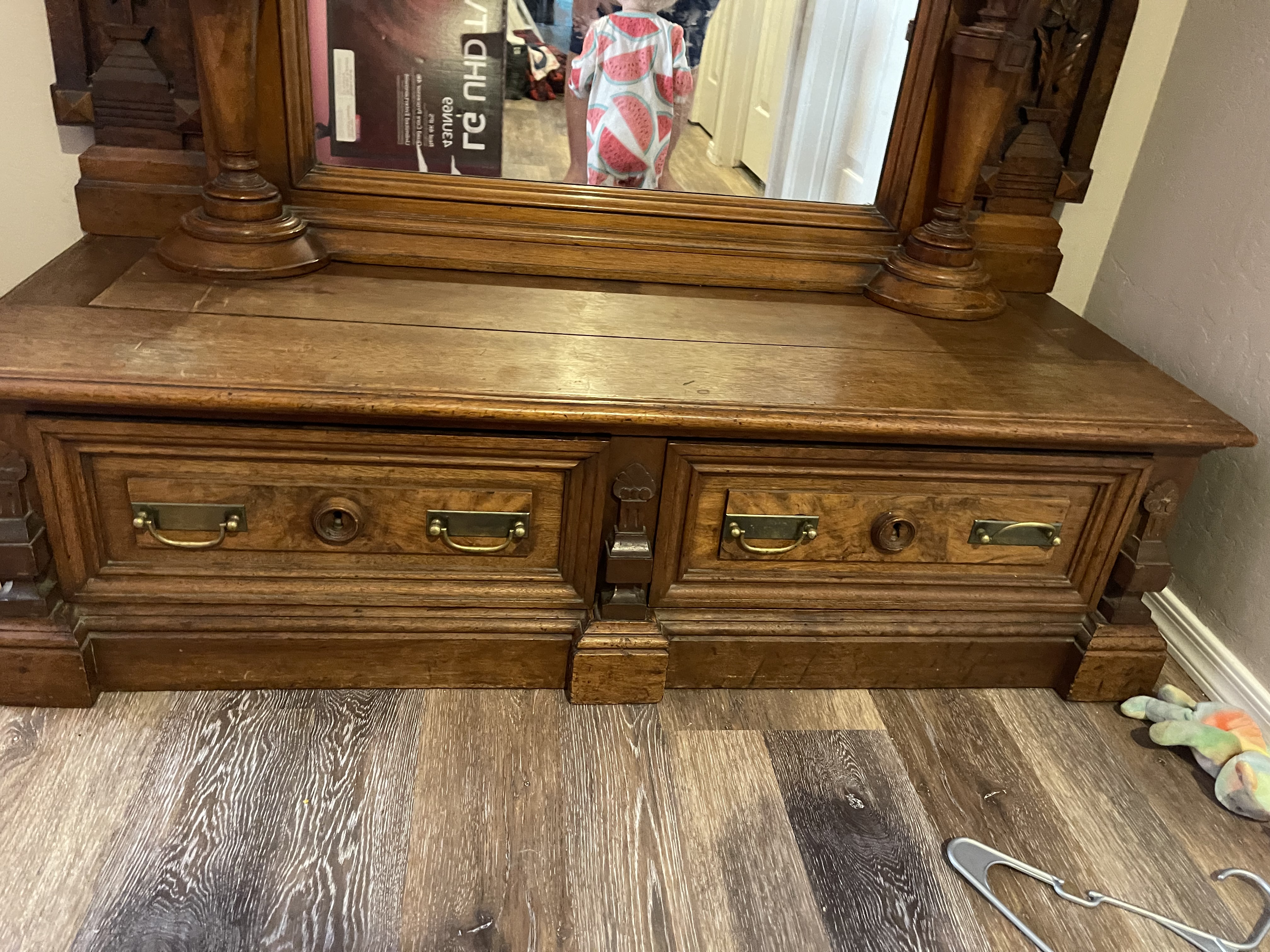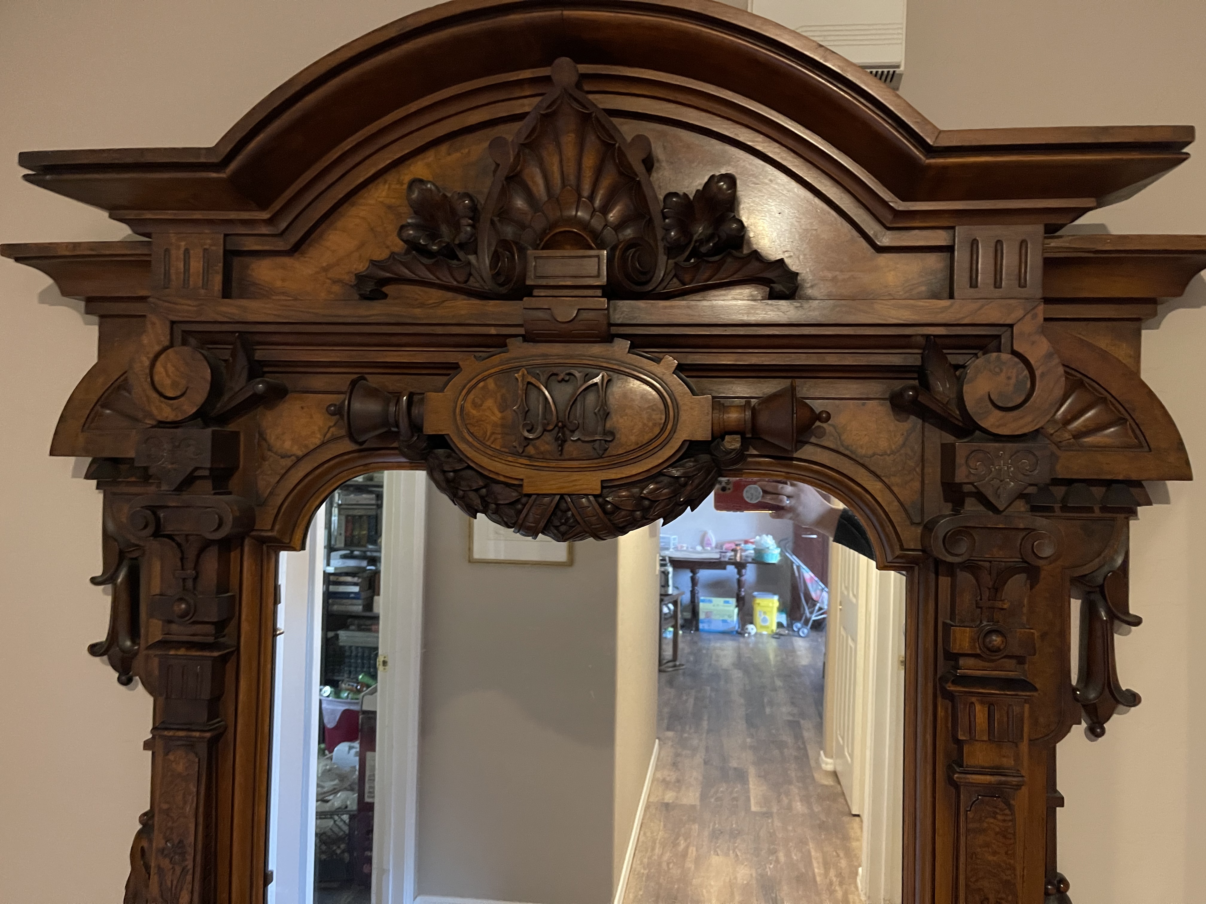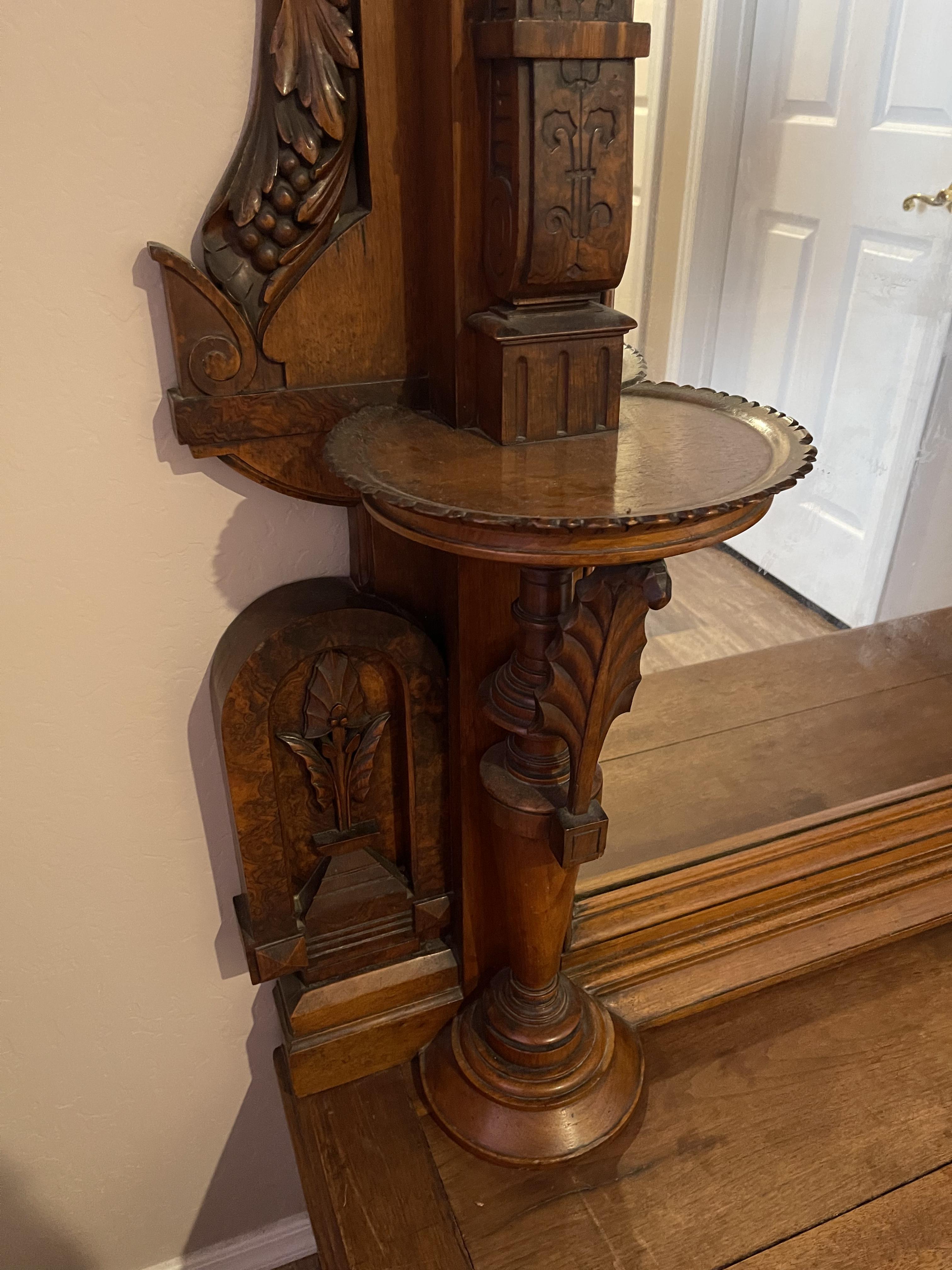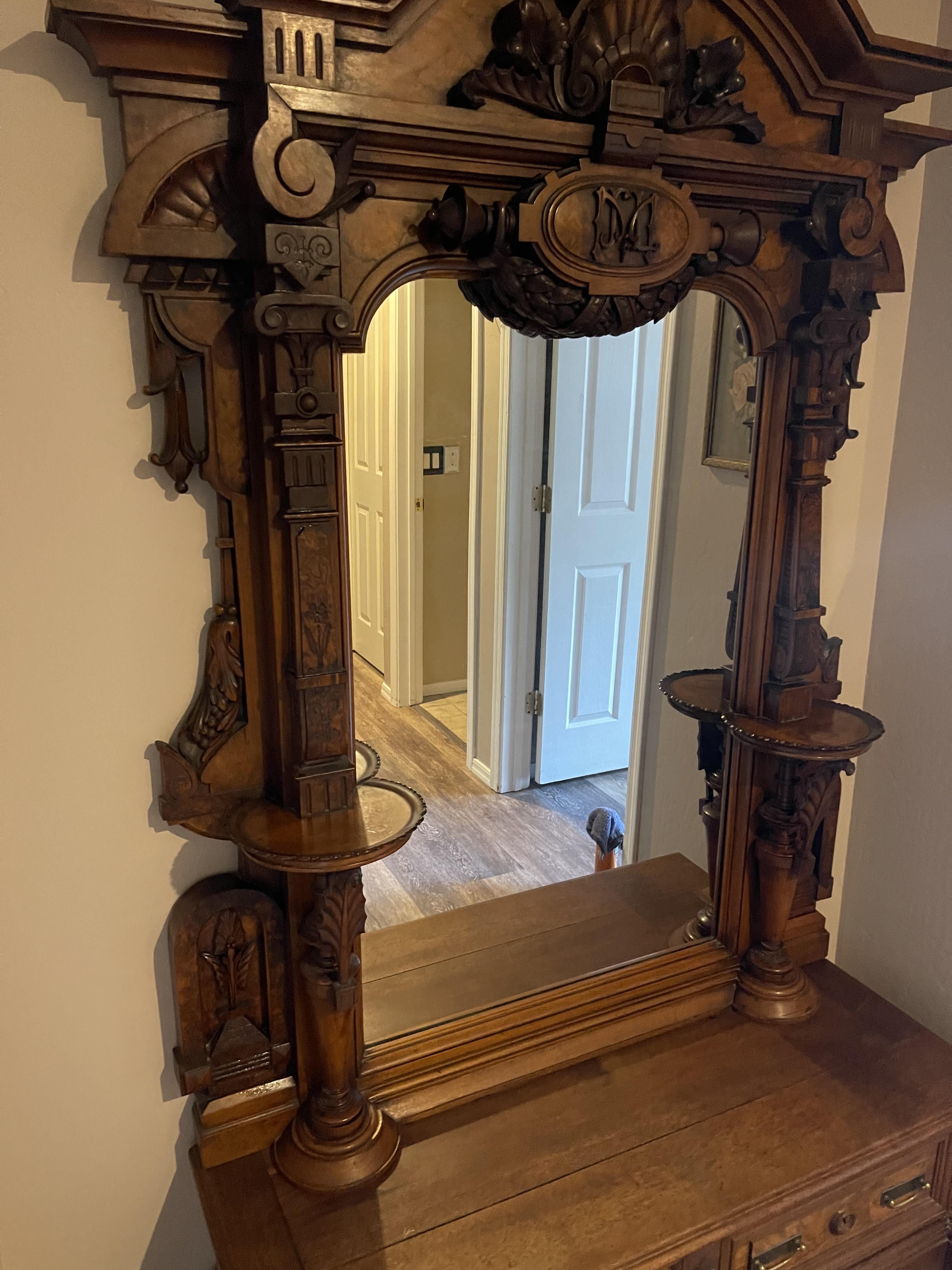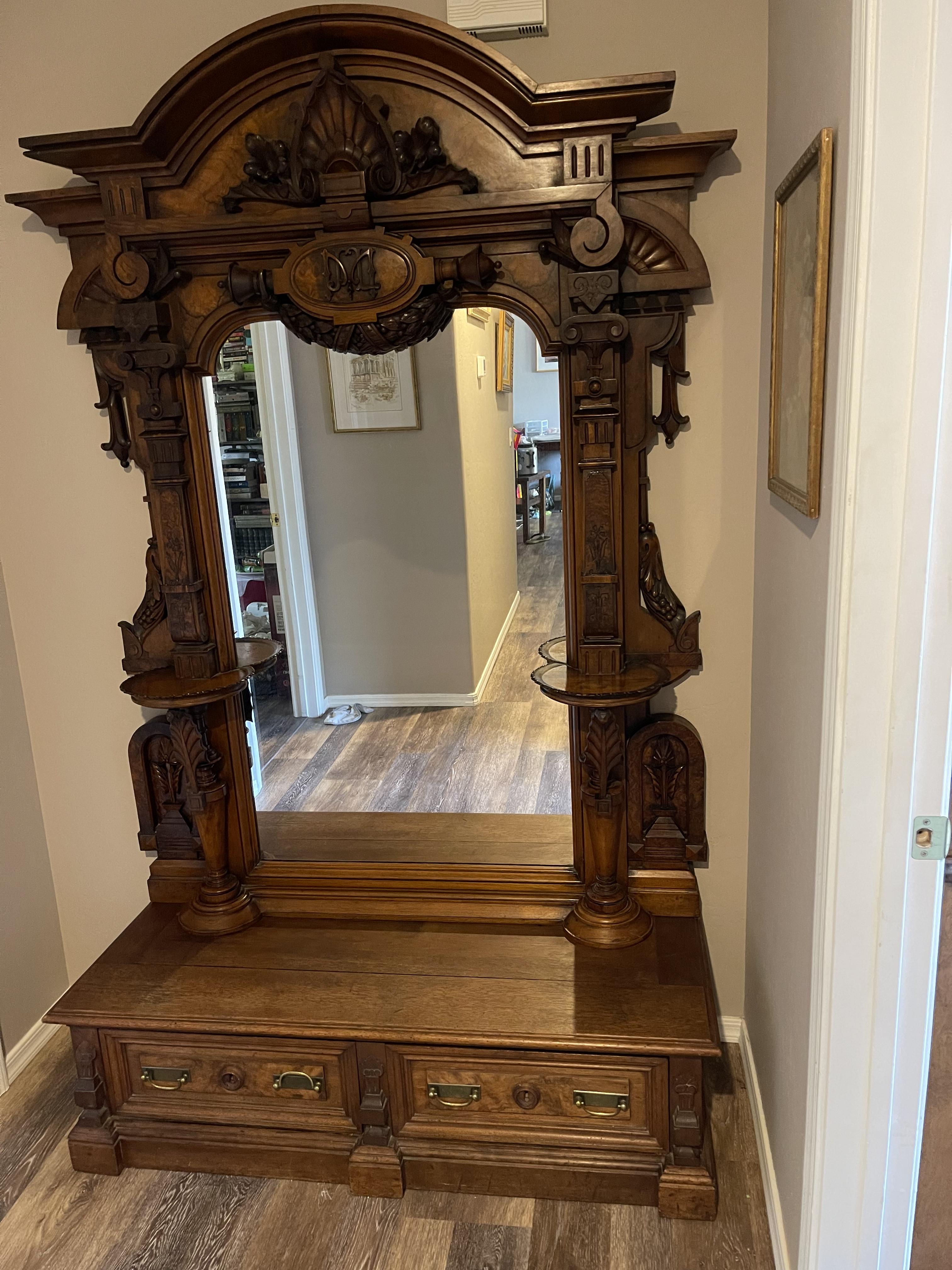 I have a unique piece of furniture that I bought at an estate sale and have never seen anything quite like it in person I’ve tried asking many people about what it is including joining a bunch of antique furniture sites and the most common opinion is that is either a renaissance revival American or Victorian hall mirror or pier mirror and honestly I’d rather ask a professional to tell me more about it. It’s such a gorgeous statement piece in wonderful condition and it’s definitely a 19th century piece. I was told by the lady I bought it from that her parents brought it from Germany. It’s in great condition