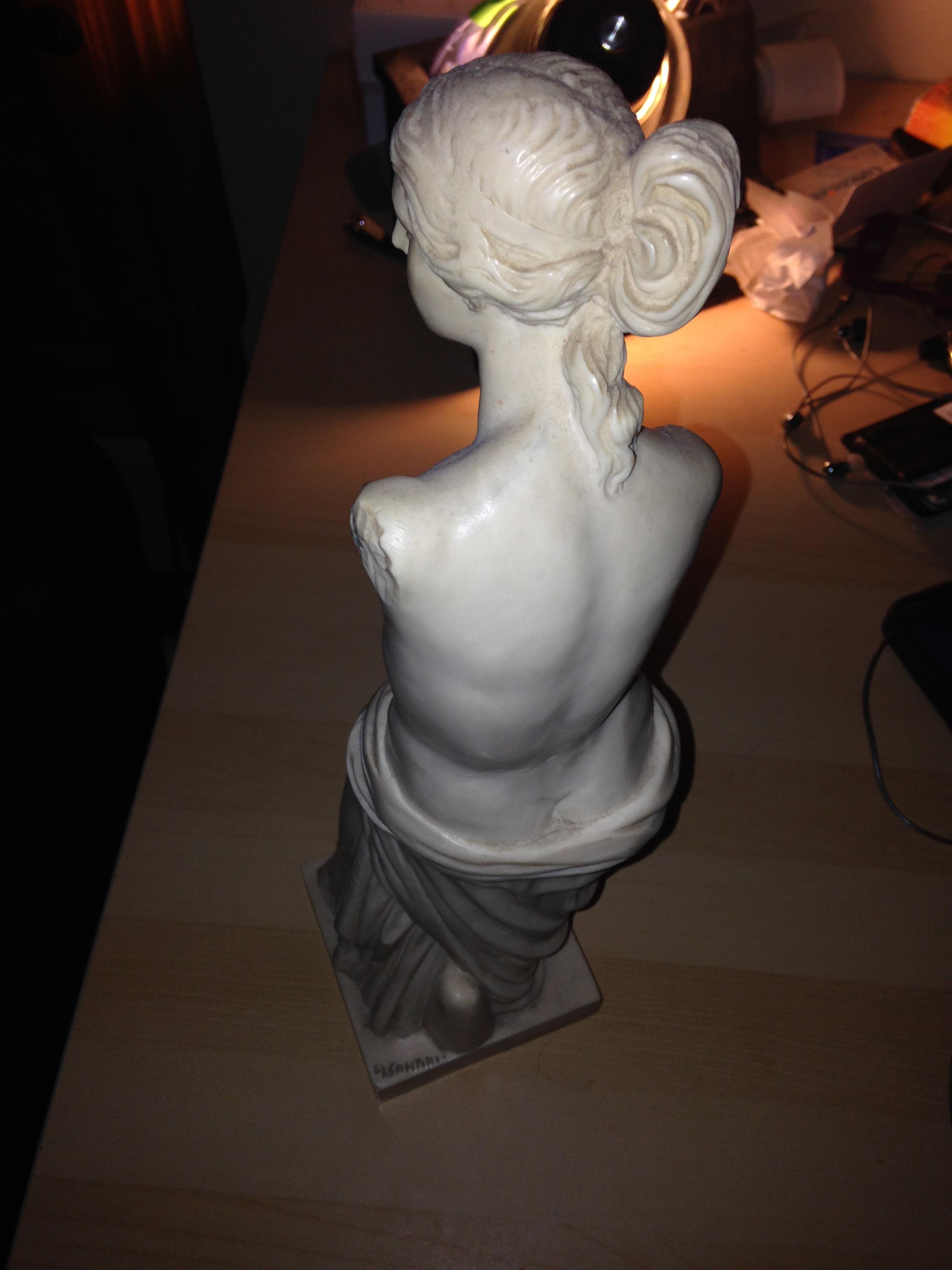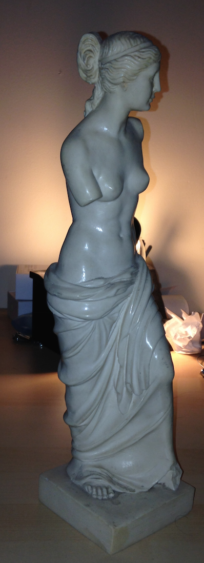 This is a Venus statue measuring approximately 15-16 inches. It has the name Santini engraved on the base of the statue.