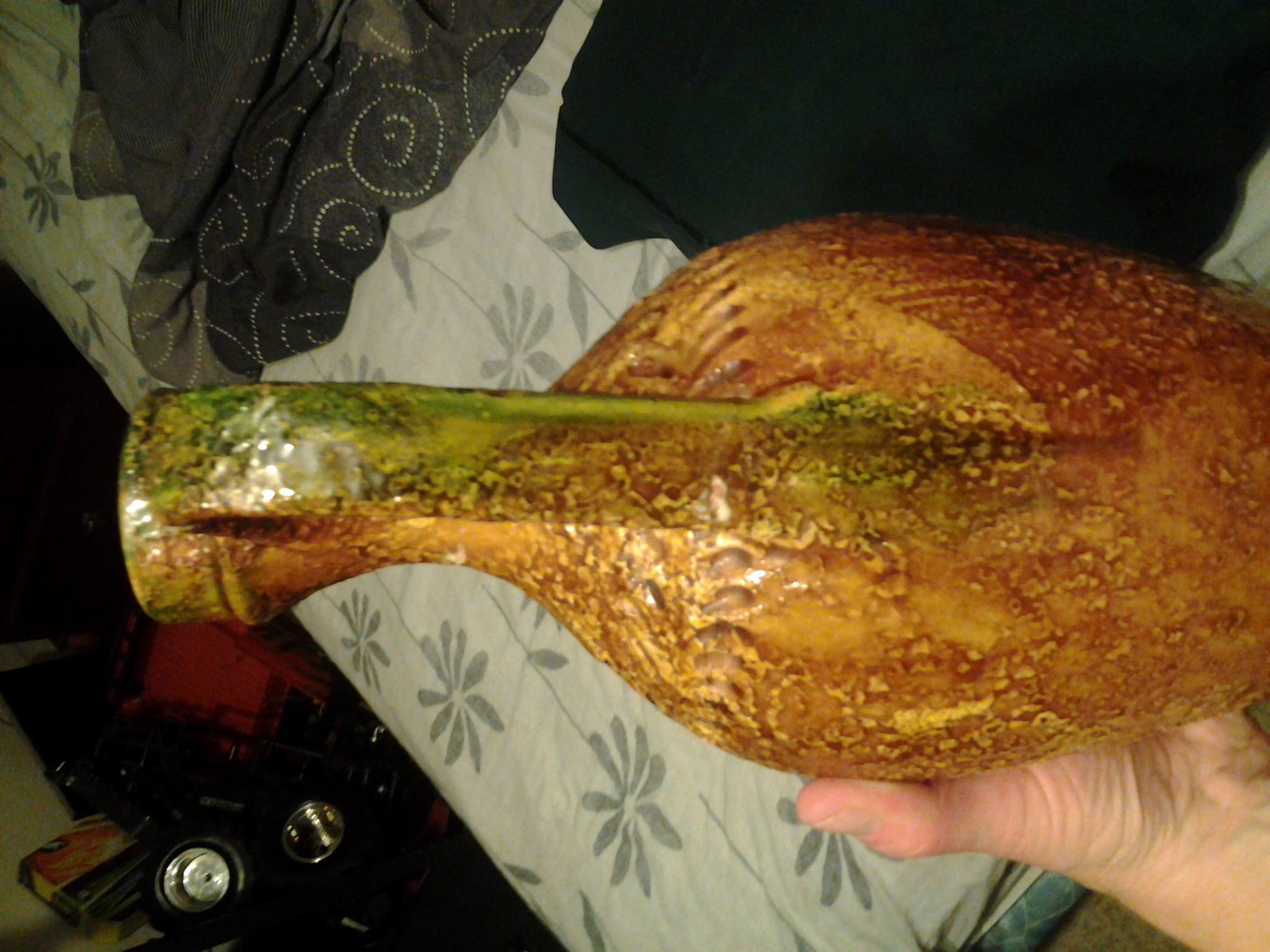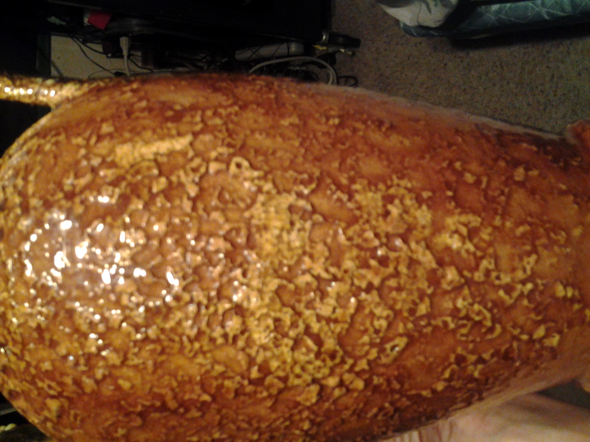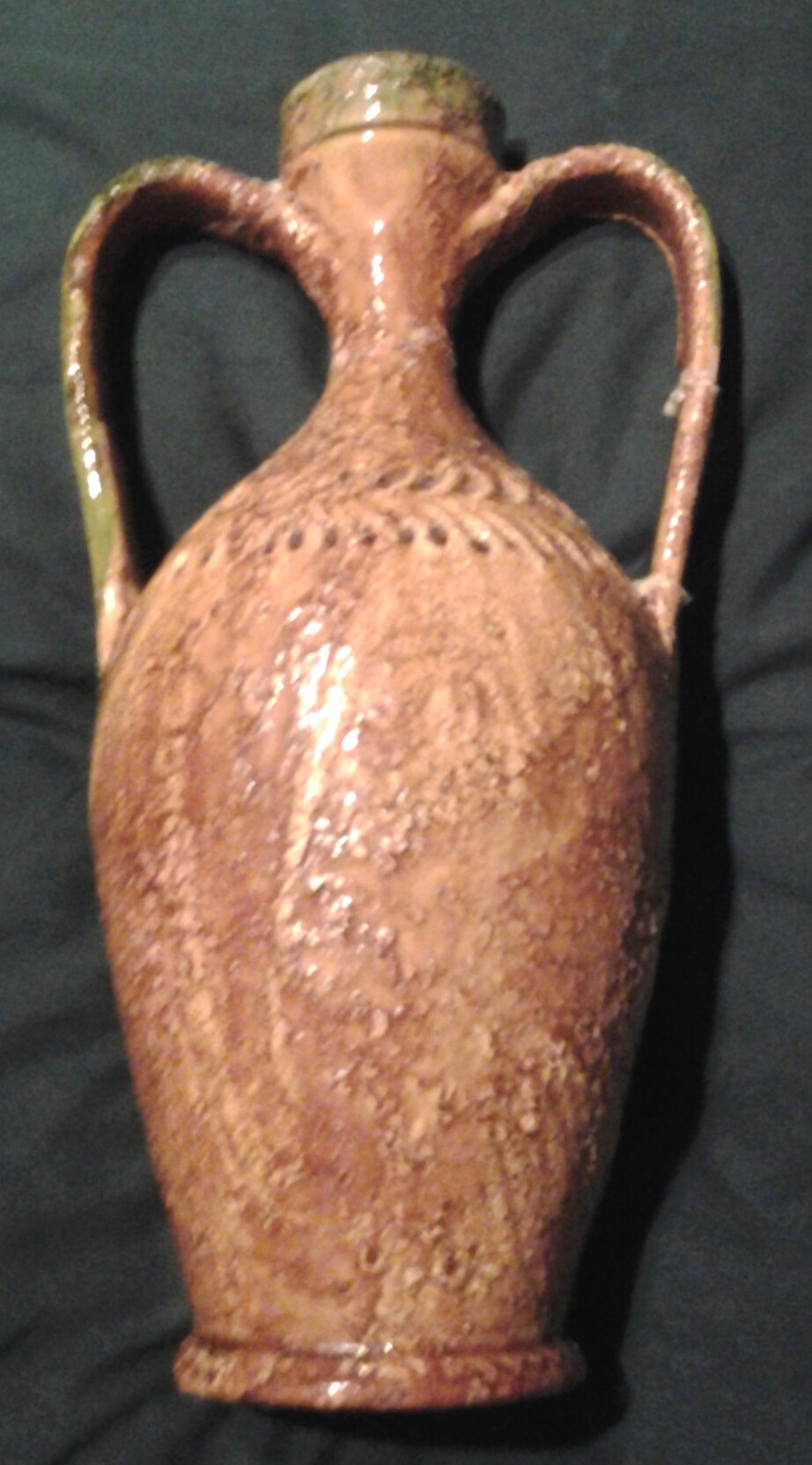 Hi, I have an amphora vase (I think thats what it is?) that is 1ft high & 6in wide-from handle to handle. It is brown w/ green handles & the surface is textured. I believe there are markings on the bottom, but I cannot make them out. I have done research, but still I still dont know-I never knew there was so much to know about pottery:different styles, markings, clays, time periods, etc. I would really appreciate some help, thank you.