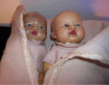 Anatomically correct boy and girl twin dolls dressed in handmade christening outfits. They are all porcelain with glass eyes.
