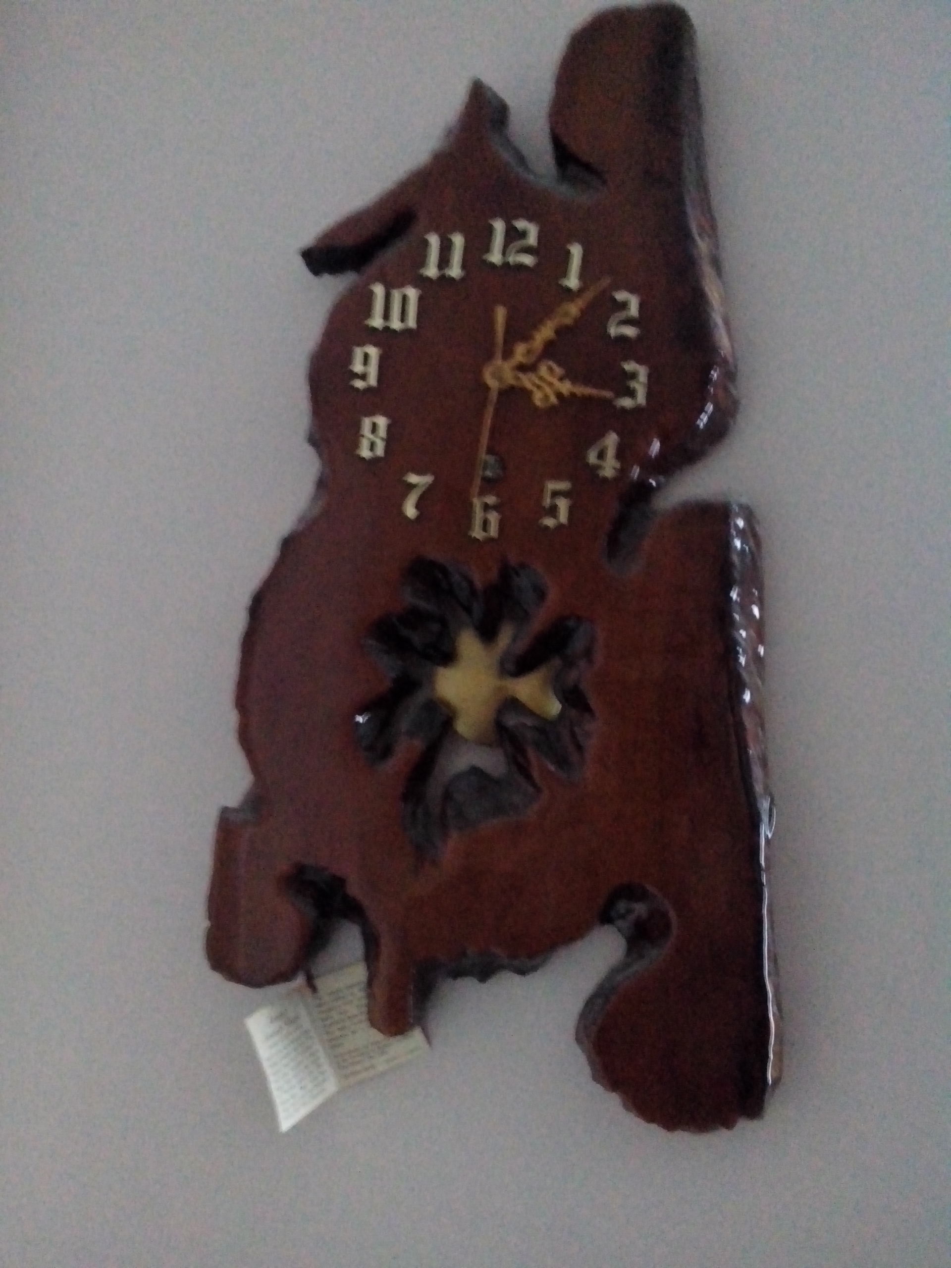 i have seen alot of clocks this style that were homemade or made by inmates then sold in the prisons gift shop but it looks like yours has a tag on it. a little off topic but if i was doing "hard time" i dont think i would make a timepiece.