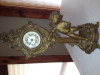 THIS CLOCK I DON'T KNOW TO MUCH ABOUT. iT IS MADE OUT OF METAL, SHE IS AN ANGEL PLAYING A VIOLIN. ONE ARM AND ANGEL WING IS BROKEN BUT I HAVE THEM. THE CLOCK WINDS UP. I T STILLWORKS......I COULD NOT FIND ANY MARKINGS