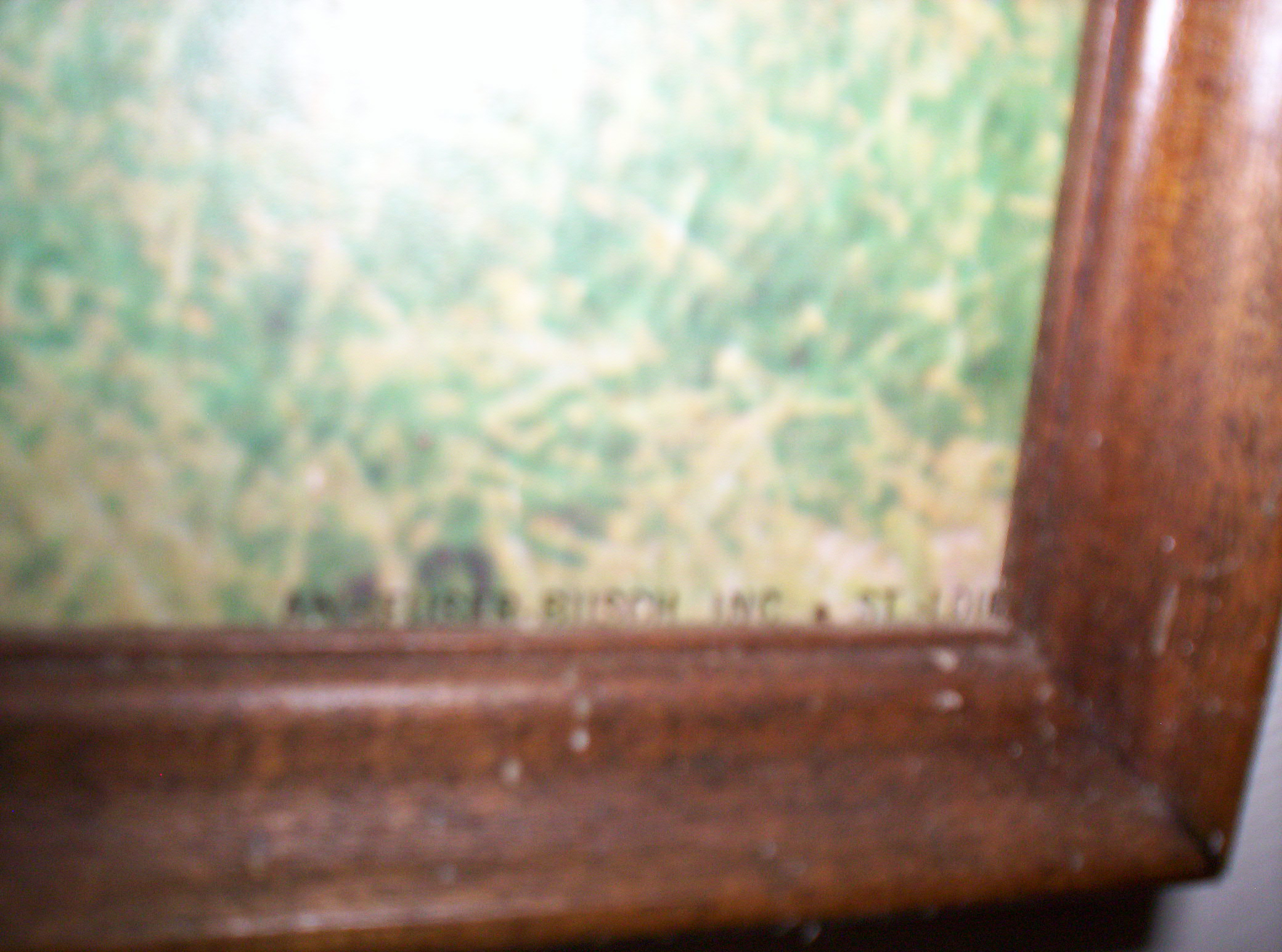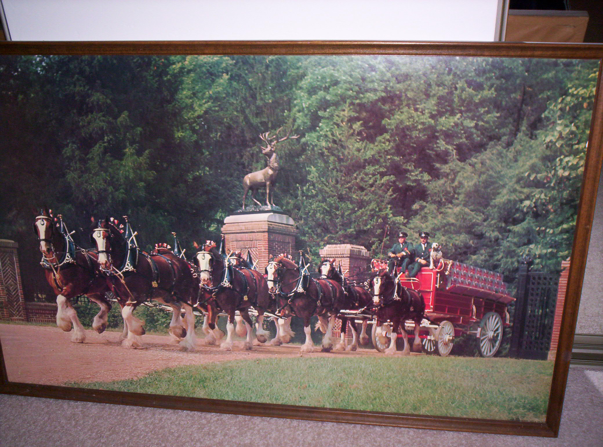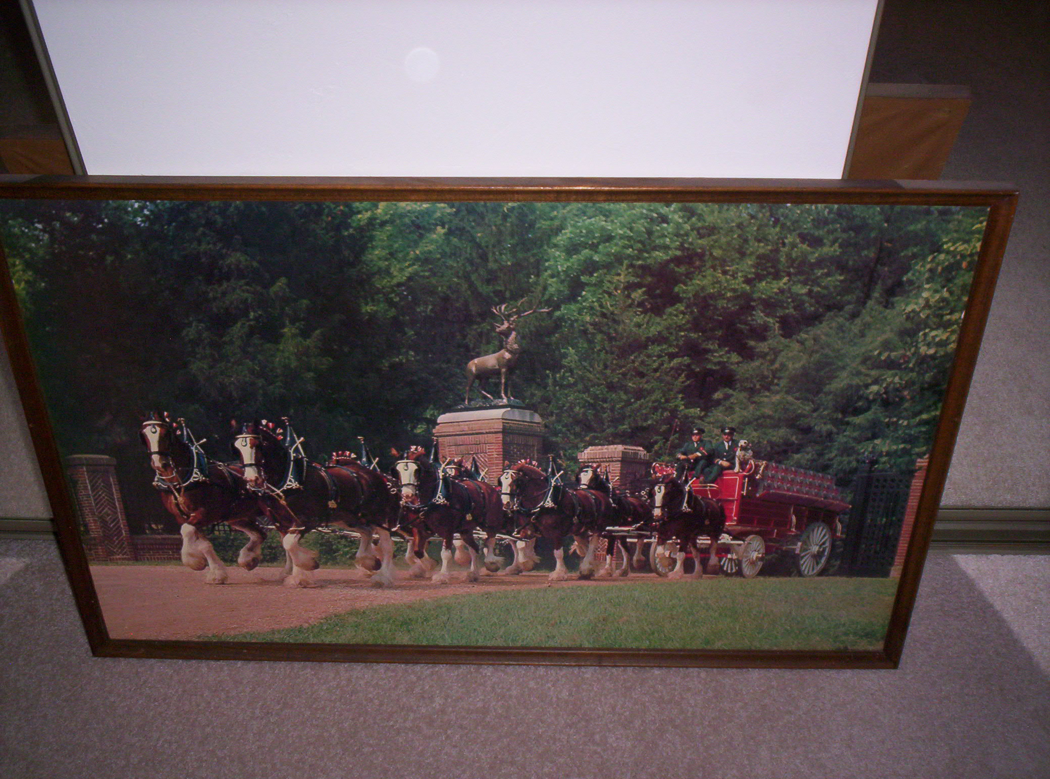 I purchased this painting/print about 10 years ago at a rummage sale for $30.00. I have tried to do research on it and have not been able to find another one. It has a framing tag from Parkinson Art Studio on the back. In the lower right hand corner of the print it has Anheuser-Busch INC St. Louis and thats all I can make out.