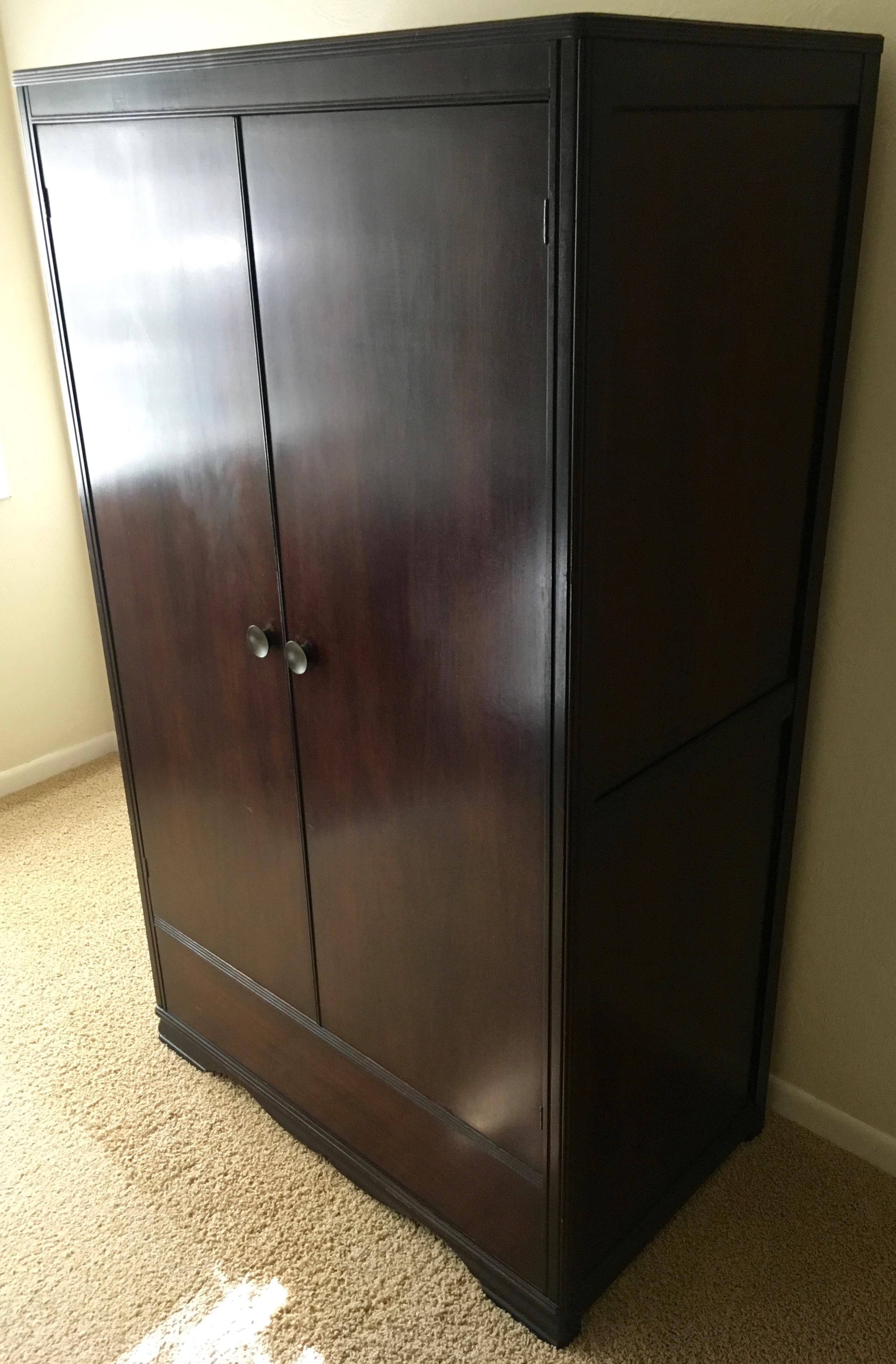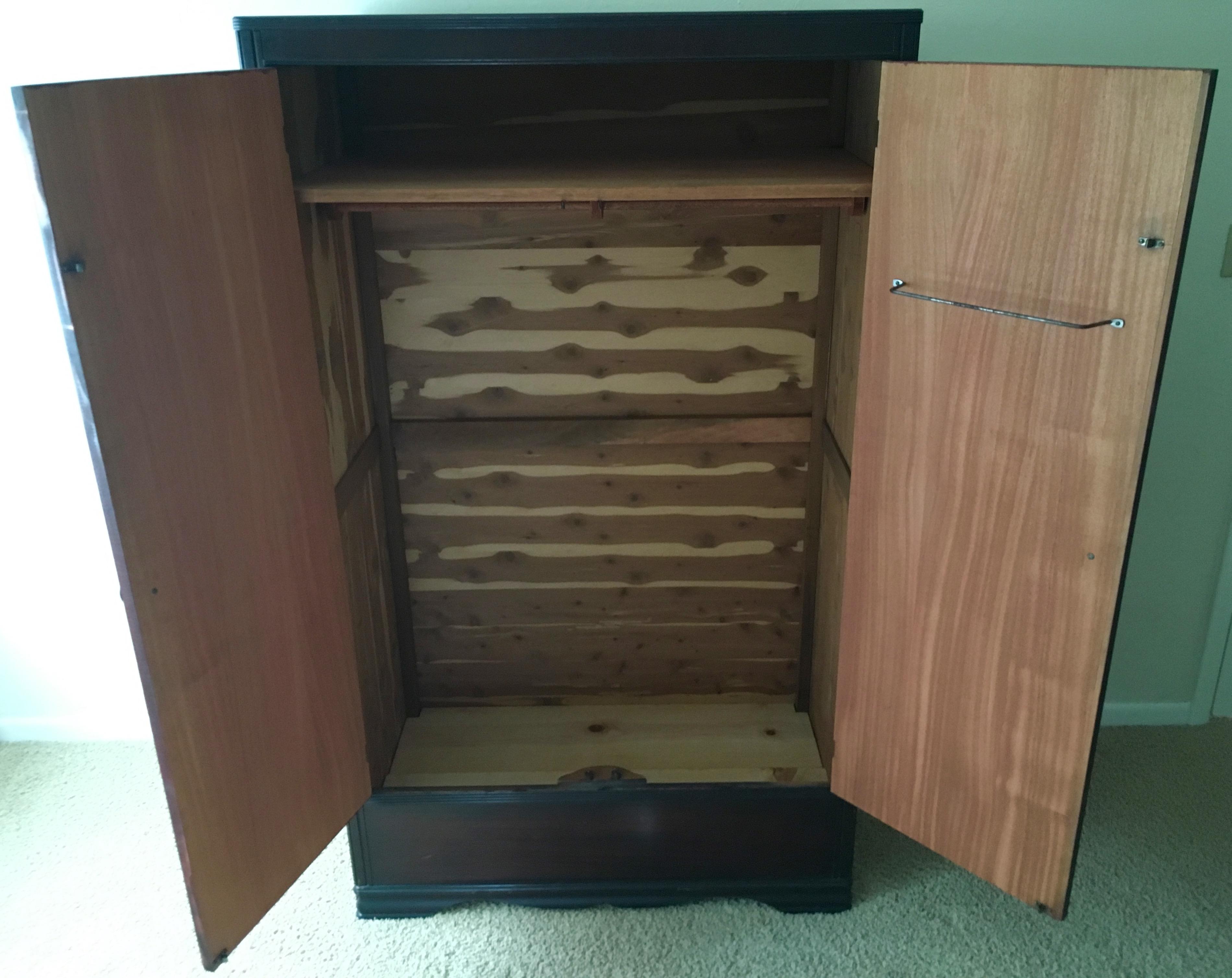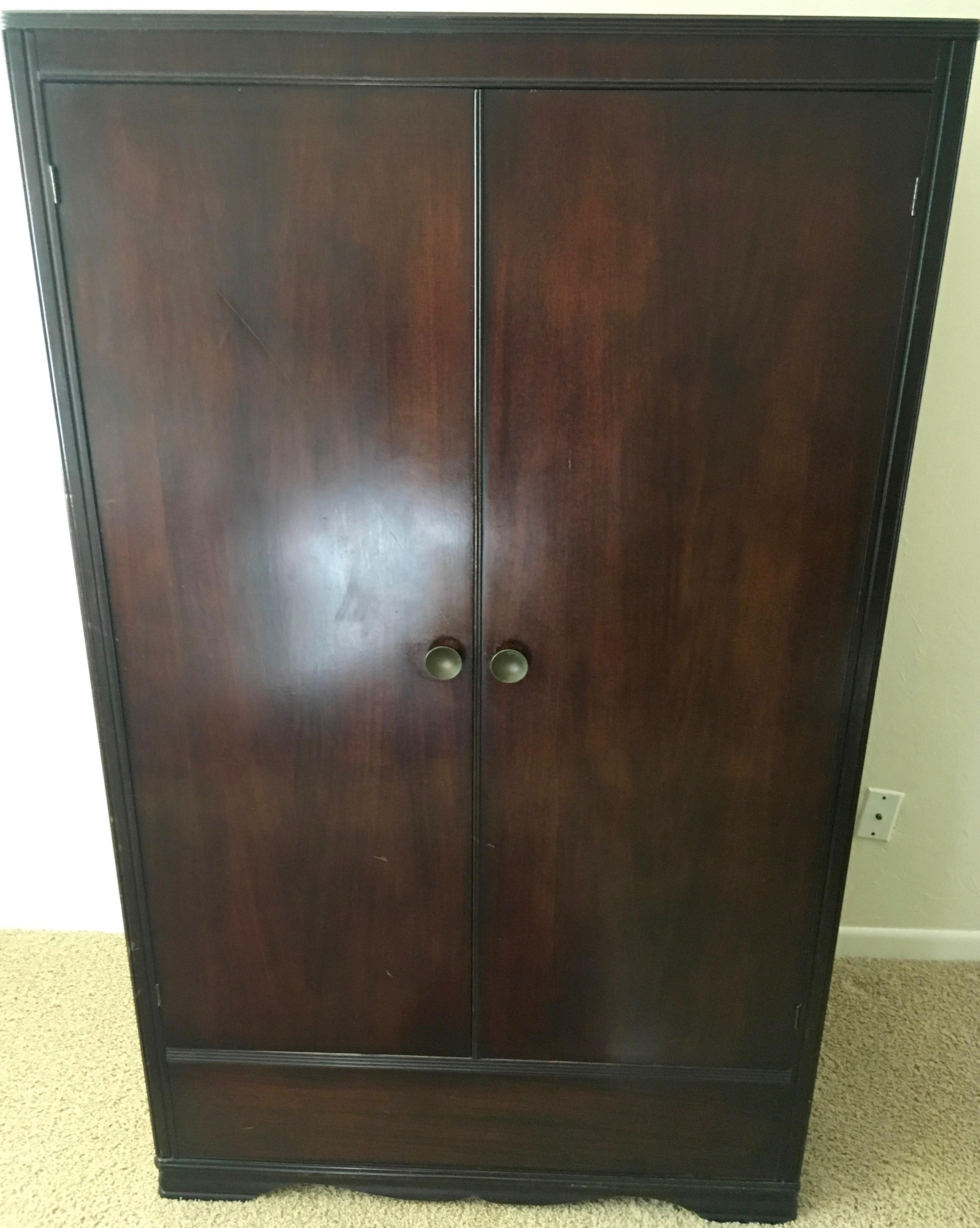 I purchased this antique armoire about 25 years ago in Atlanta. The wood is in great condition. It comes with a removable floor support and shelves.