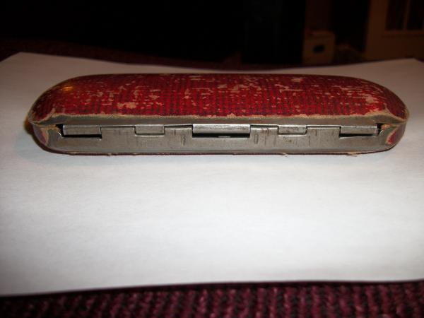 Unusual shape and rather plain for Ansonia clocks. But nice and rather old from what I have found about Ansonia and the type of materials used in their early clocks. There is a dark wood base to the clock. 4 round feet screwed into the wood. Has a key to wind and set. Clock face has a hinged window that opens in front. Also a hinged door in back to the clock works. A brass plate on the inside also denotes Ansonia Clock Co. New York USA. Abovethat there is a small lighter, hand engraved marking that reads s dtyX s or sdutyx5. Have had several people try to assign an age or worth to this clock and they have never seen one like it before. Beautiful chime tone!