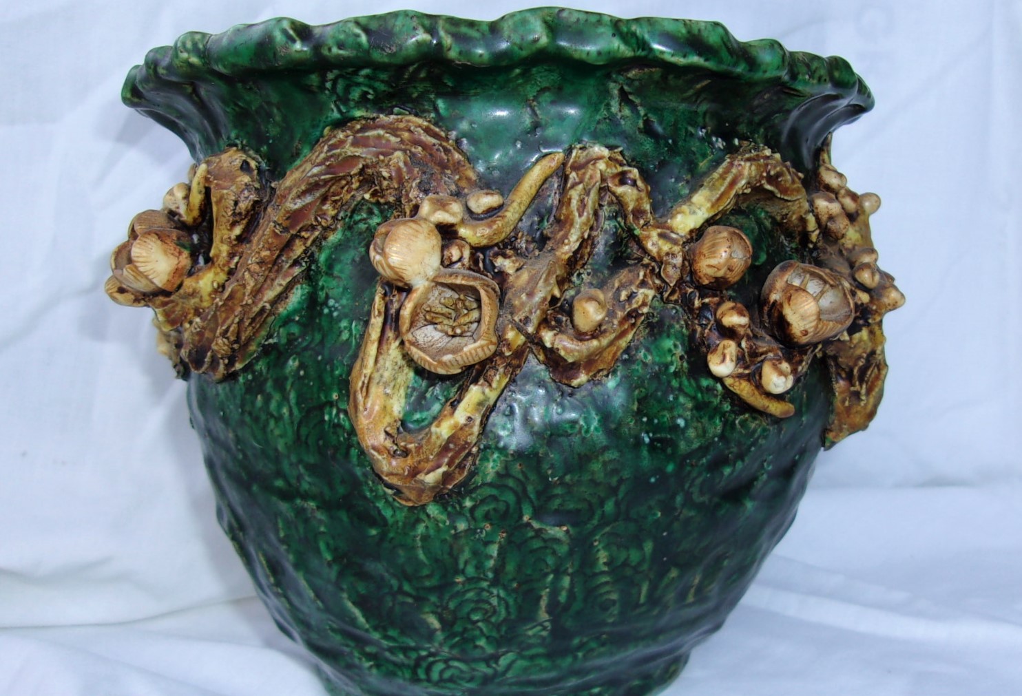 Beautiful green pot measuring approx. 6-3/4" tall x approx. 24" around. Acquired in Japan during the American occupation. It has been in my family for more than 75 yrs. Anyone knowing a collector of Japanese items, please let me know.