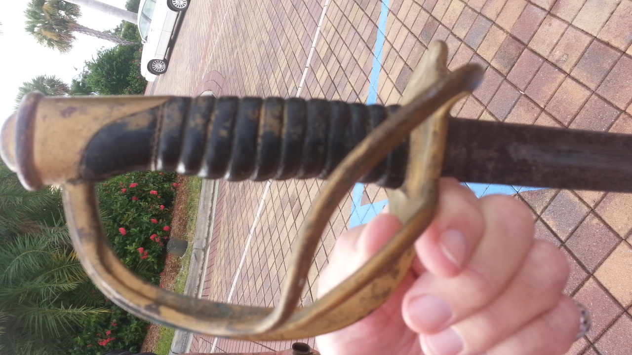 I think it is a Cavalry saber, Model 1840, Hammond.   It has a B on the handle and what looks like31. Sorry the pictures are not the greatest.
