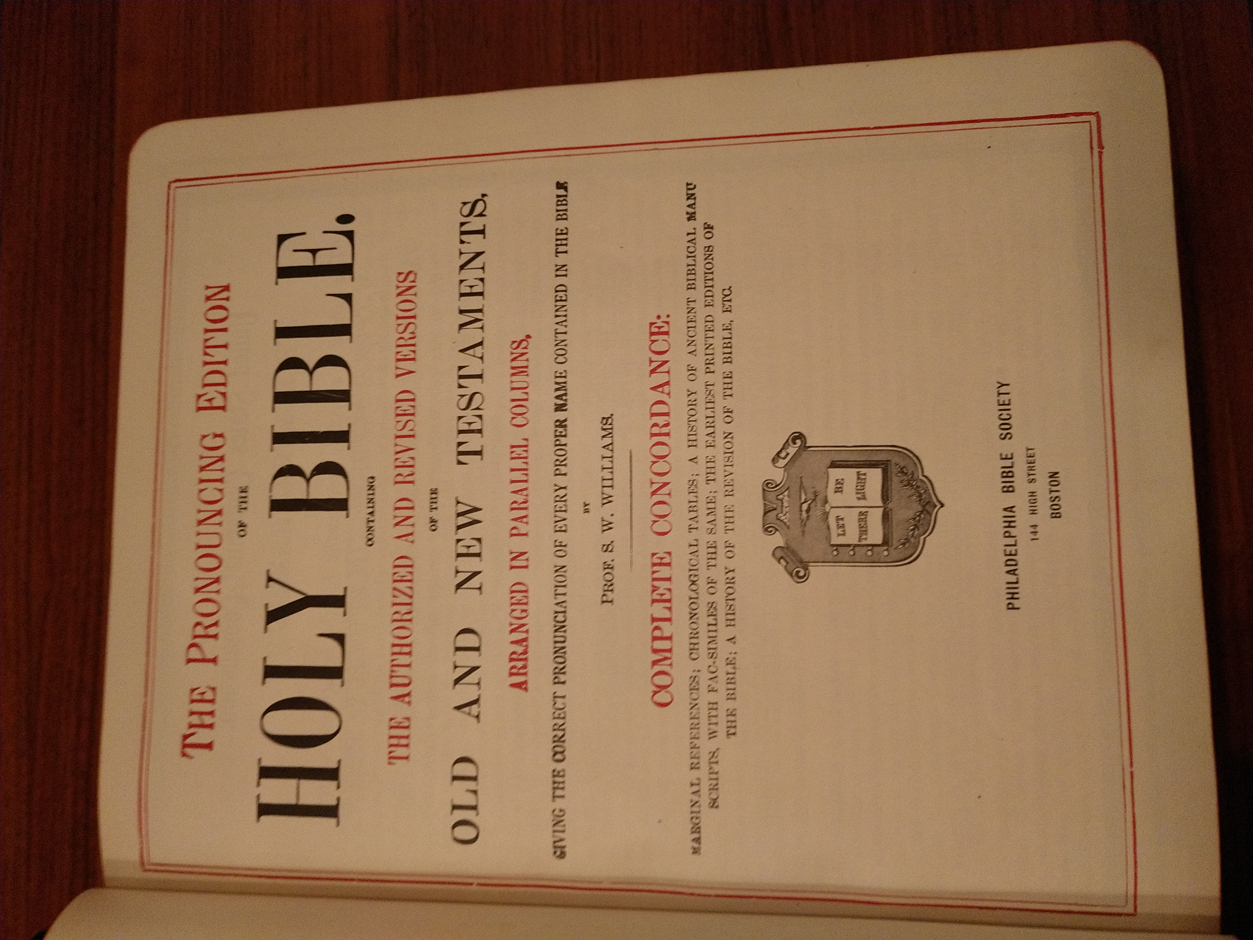 The Pronouncing Edition of the Holy Bible. Believe the actual publishing date was 1900, although original receipt inside states sold in 1910 for $14. The book is in immaculate condtion. Hundreds of black and white illustrations and many in color. Original protective parchment paper covers each color page and looks like they were never touched. Book weighs about 13 pounds. Have seen just one on-line, not in good condition, selling for over $400. Curious as to what the retail price of this book is. Thank you.