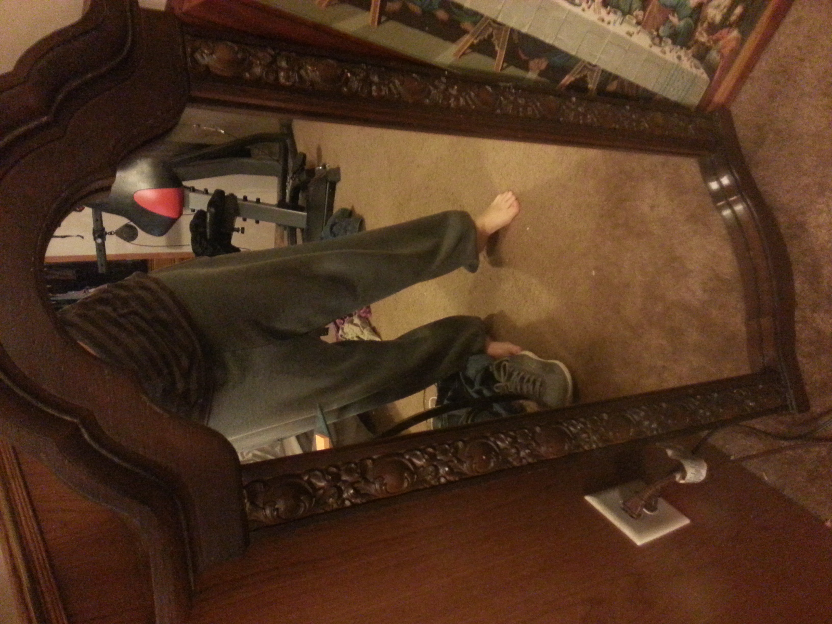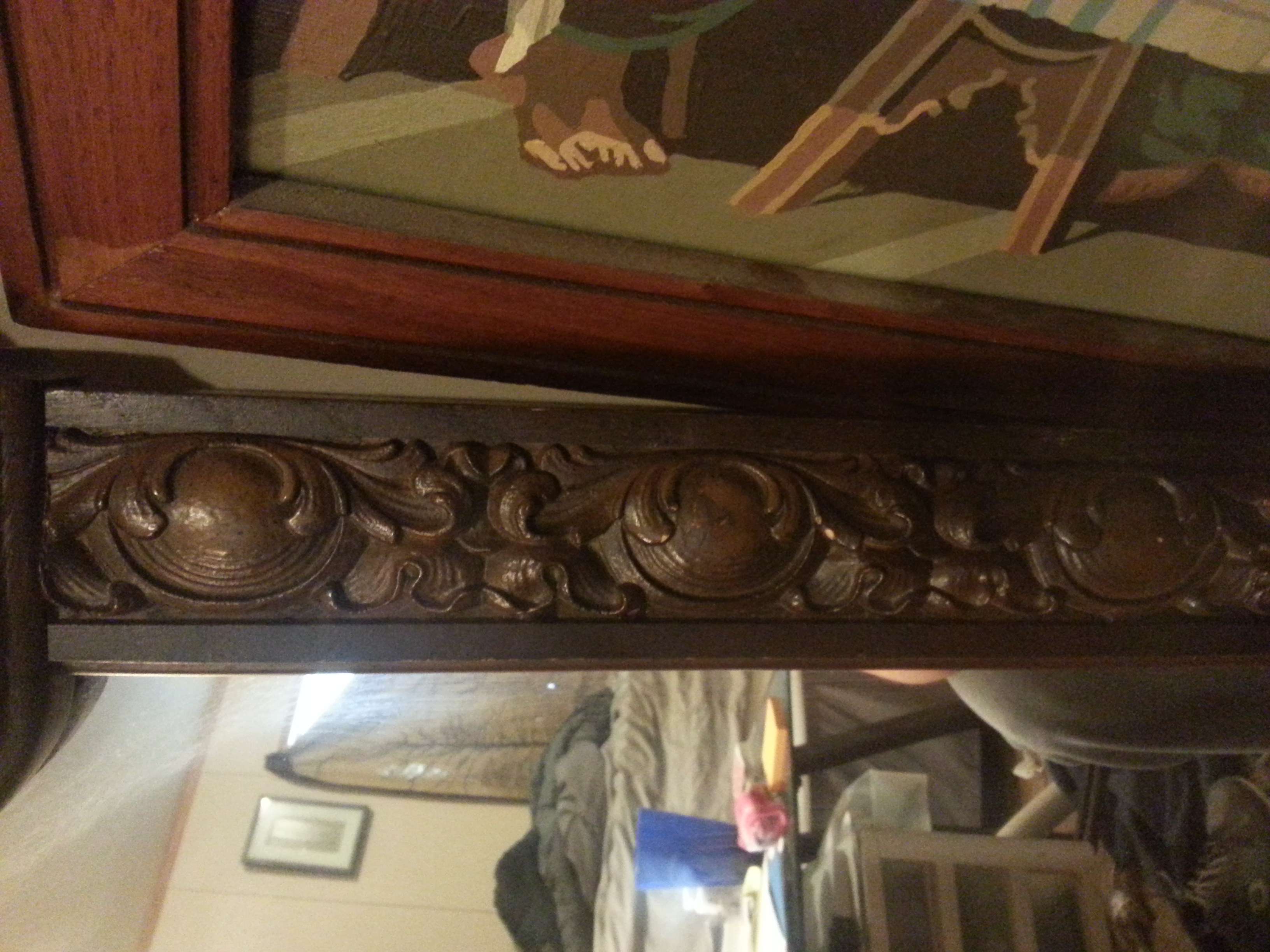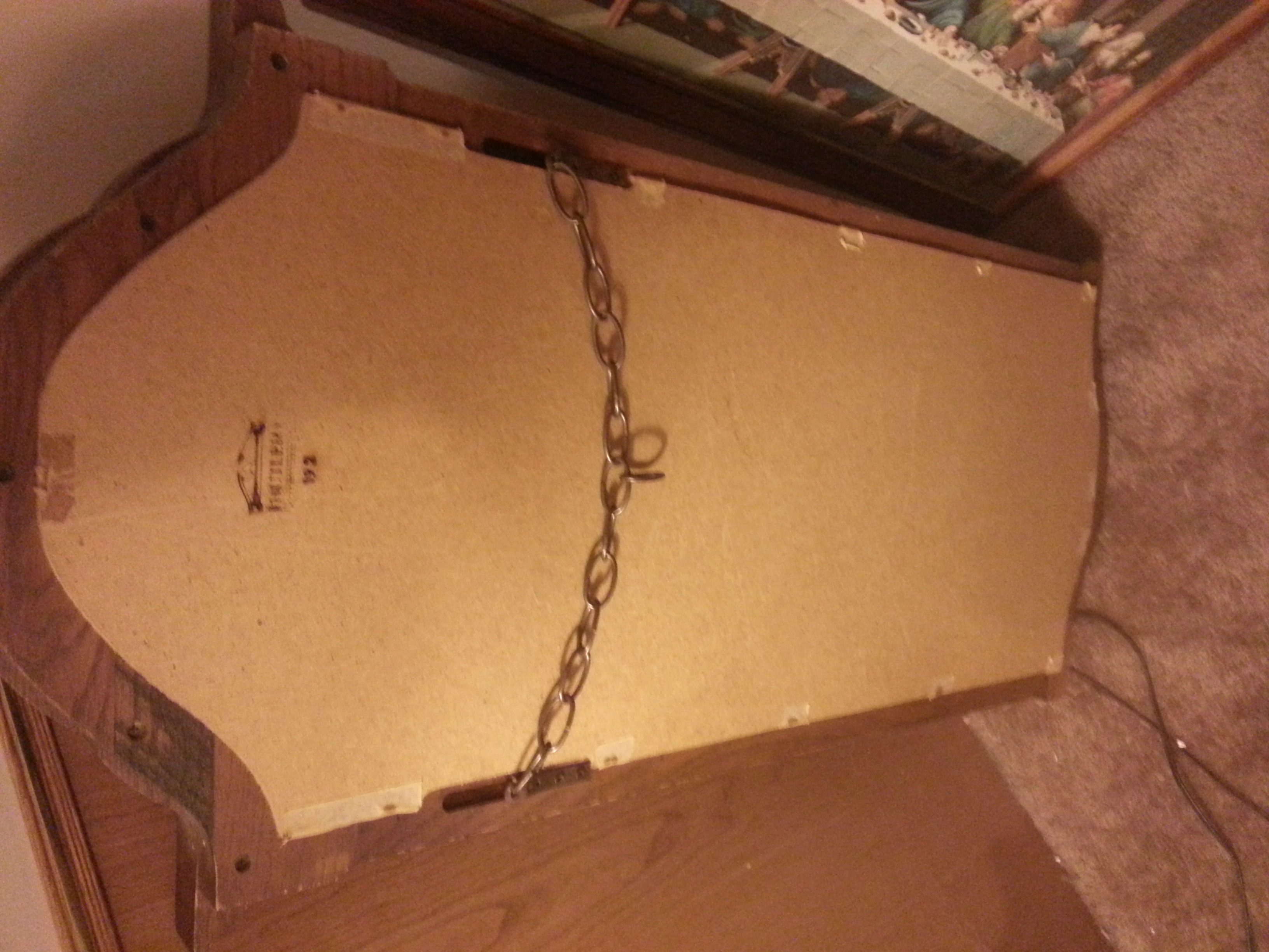 I has this mirror for many years.. Its very very heavy and has a chain on the back. Its in great shape and I feel its worth something great