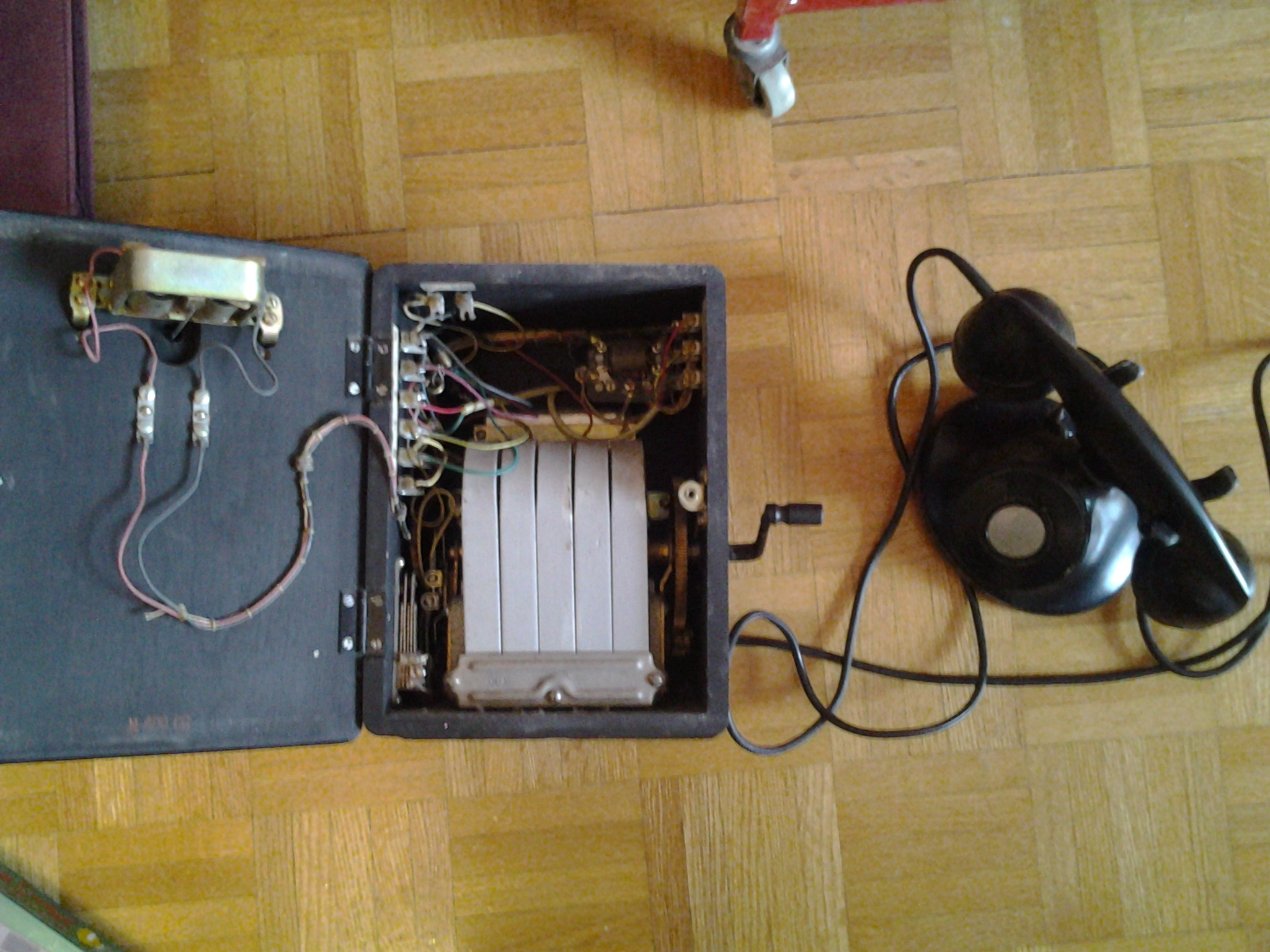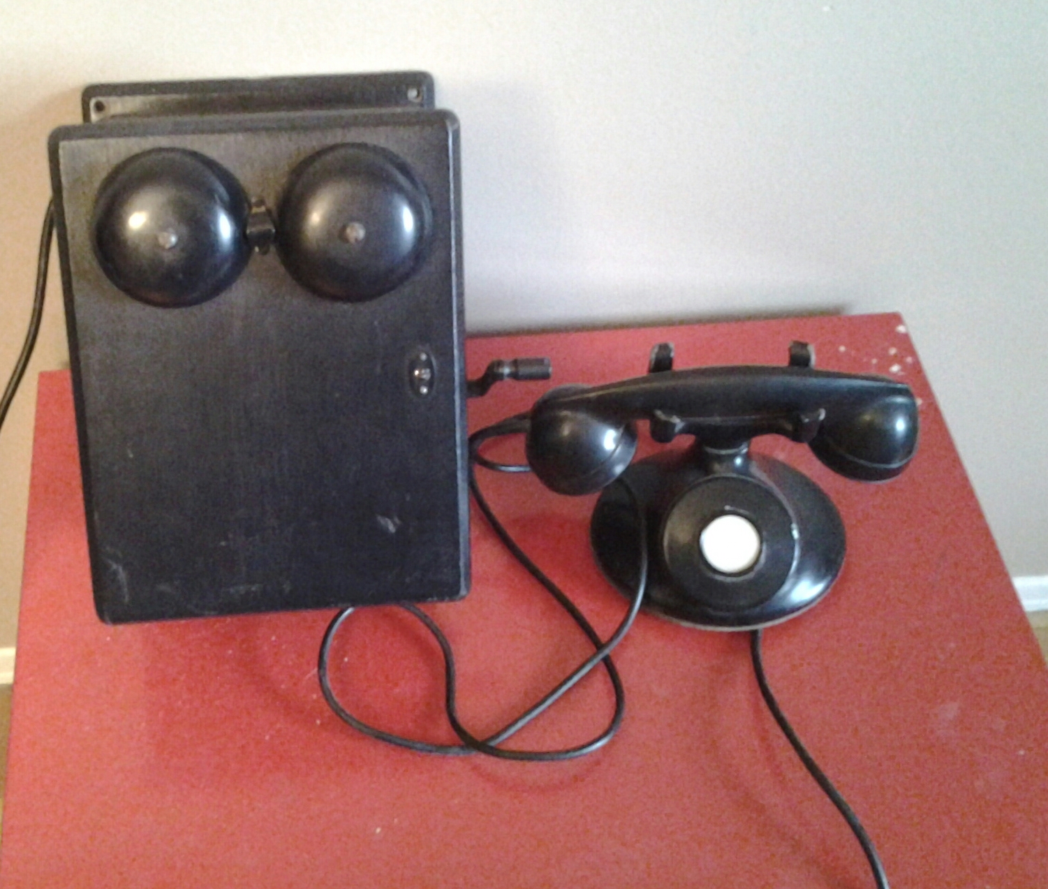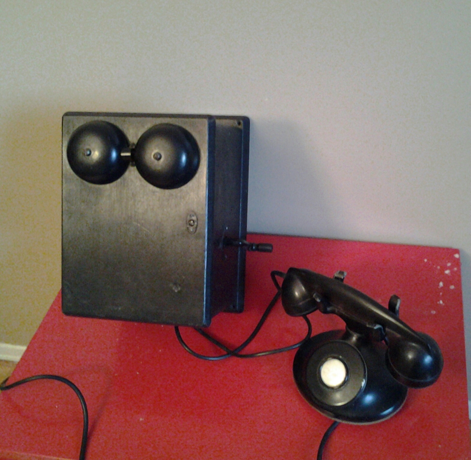 I think it's 1920s northern electric desk or wall crank phone. Box is oak. There is a number on the back. N 400 CG. I'm pretty sure it was painted black.