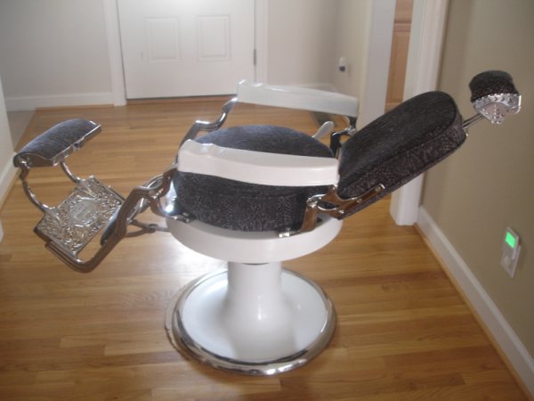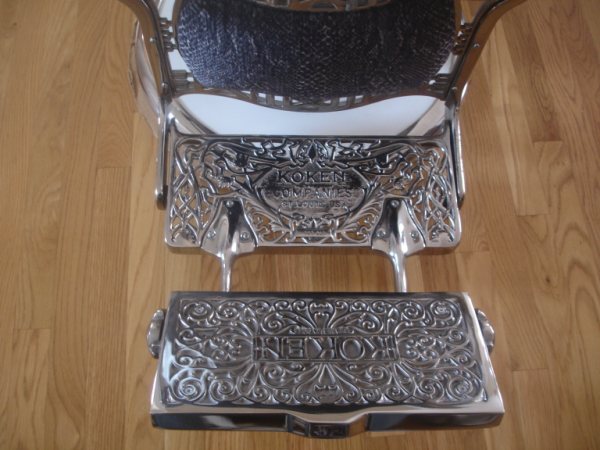 This is a Koken Barber Chair, from either the late 20s or early 30s. My brother in law's - a barber - was given this chair by his father, also a barber. His father made a hobby of collecting and restoring old barber chairs, and this was one of the finest. It has been rechromed, reupholstered and bolts and other small parts replaced if needed with parts from other similar chairs. It's the double round version, with base and seat both circular. All hydraulics and mechanics function as intended! I have plenty of pictures, for those interested!
