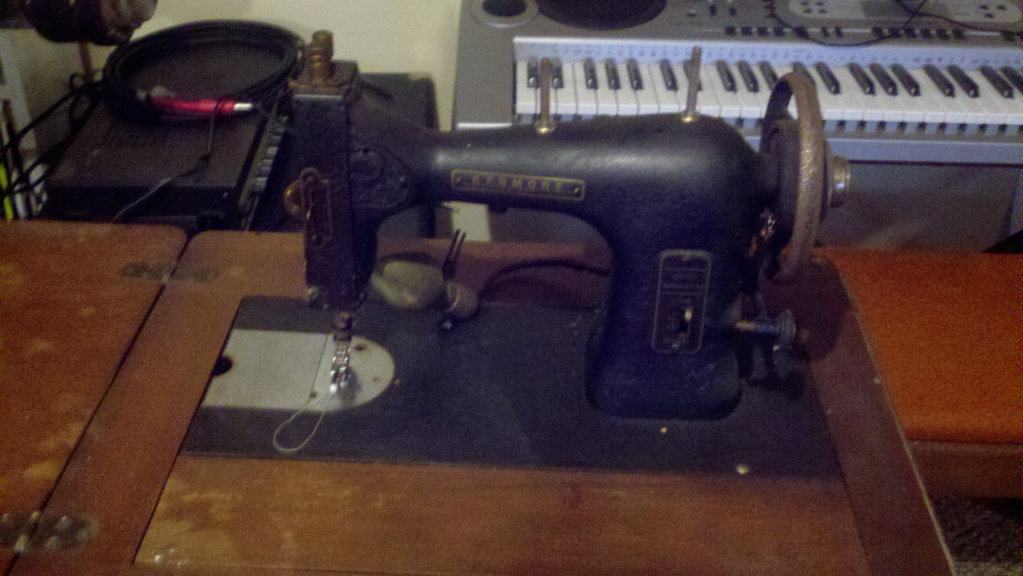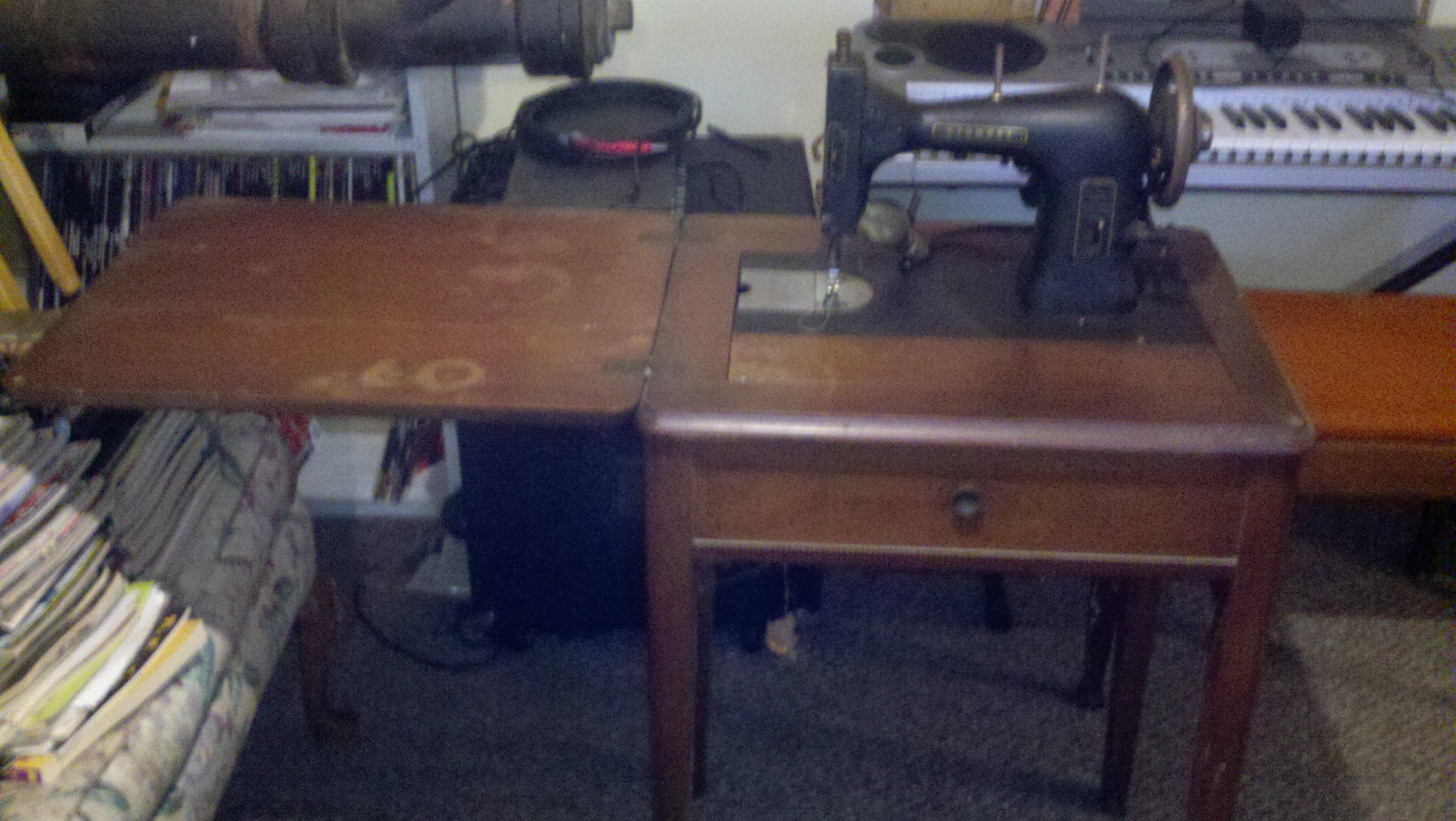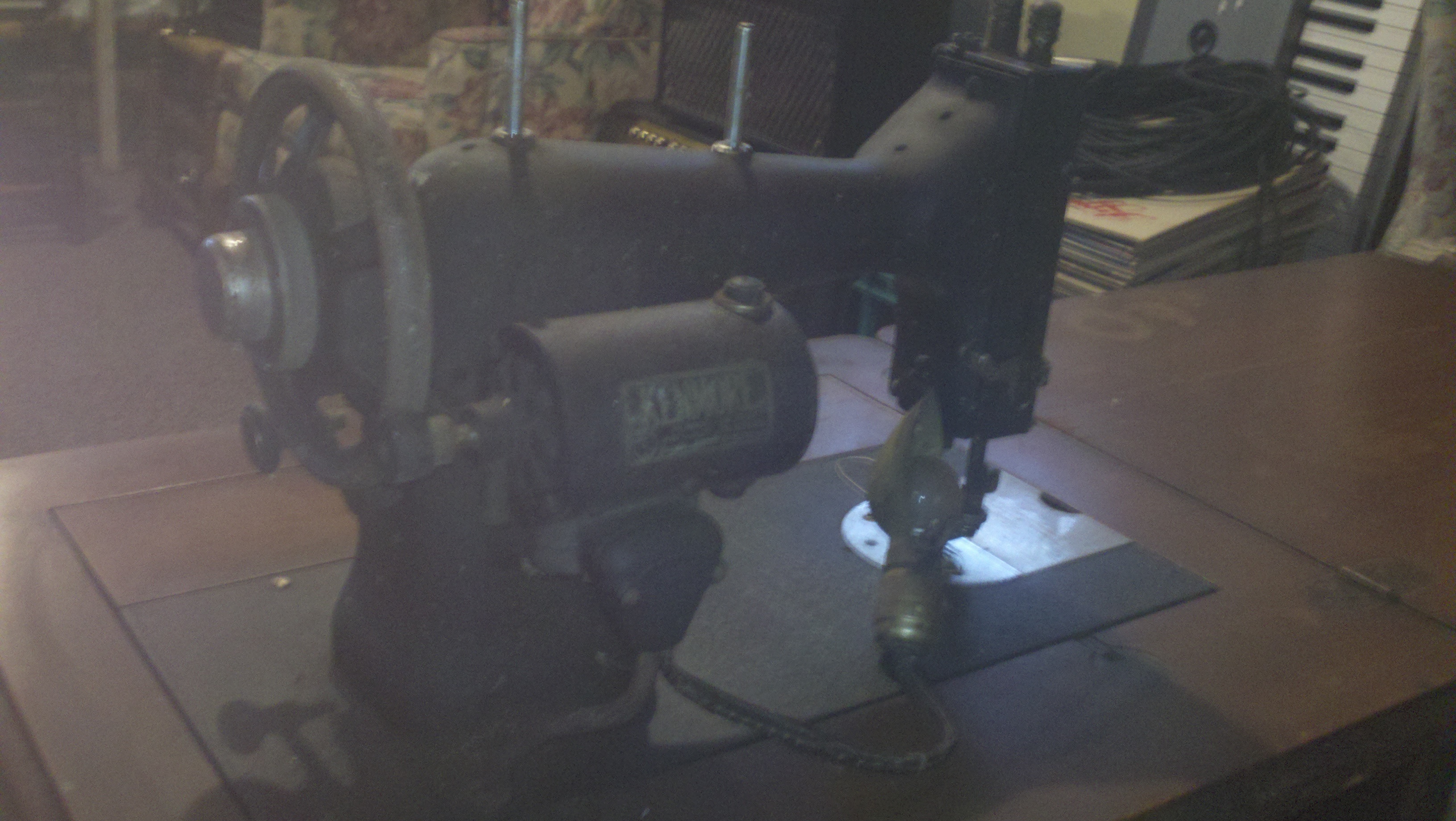 1939 Kenmore Rotary Sewing Machine, model# 117.119, 65 watts, 110 volts, 75 cycles with wood table. Good condition.