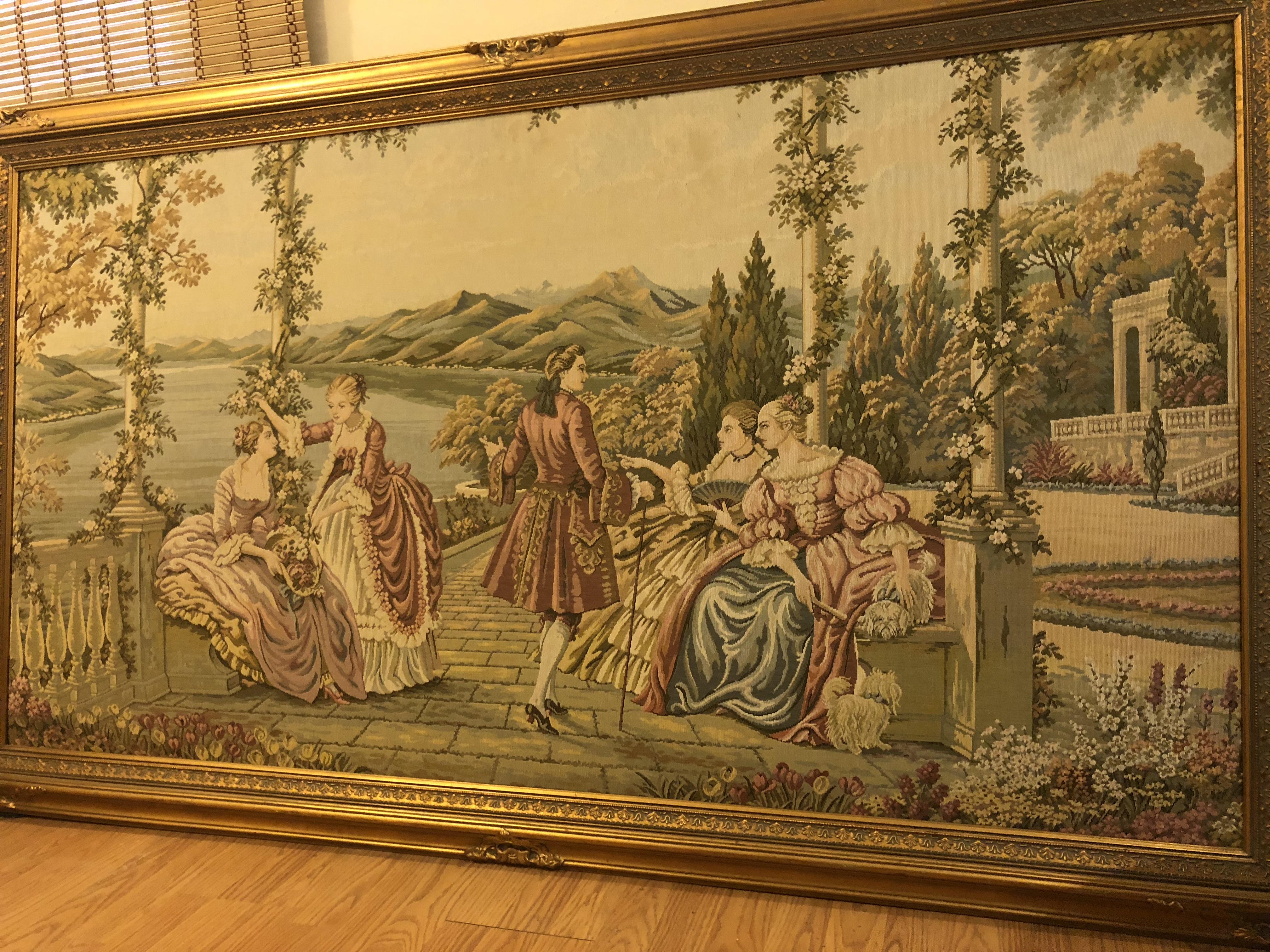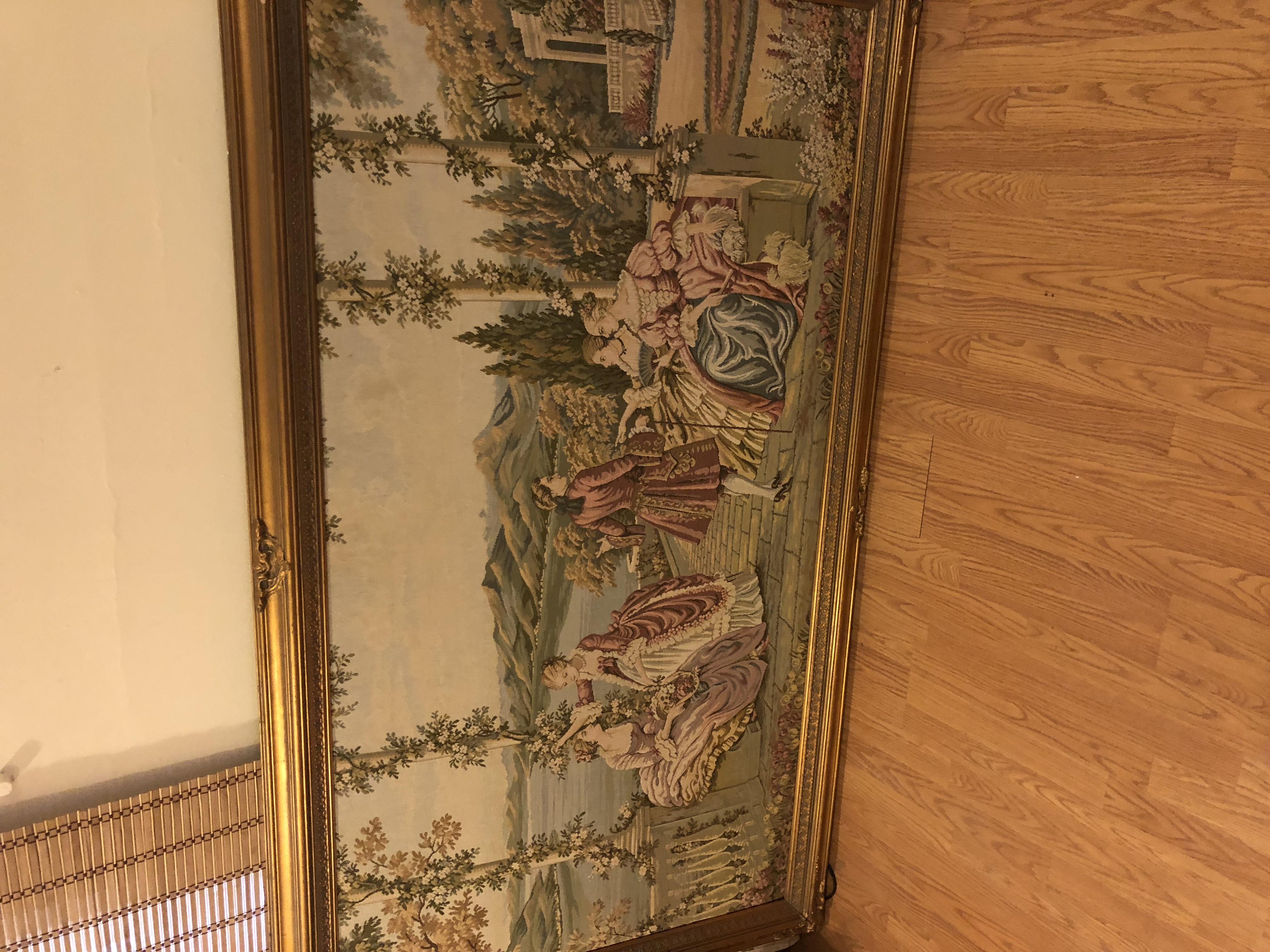 It's a machine woven tapestry, most of them post date World War One (1918) . They were made in huge numbers in France and Belgium, most of them sell for under $200.00 depending on size and subject matter