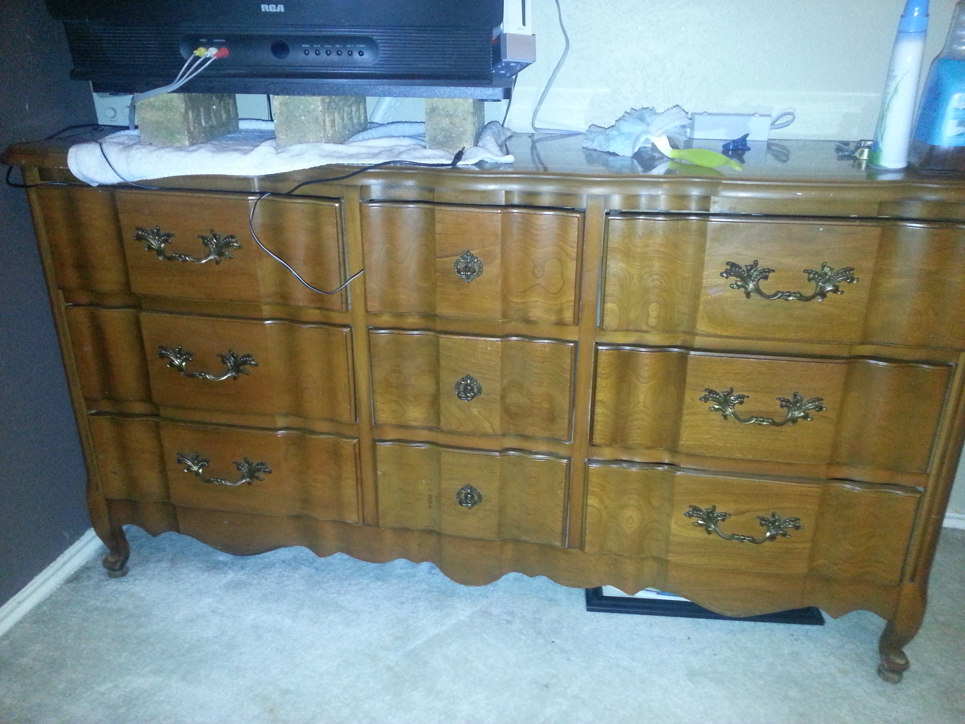 Antique 9 drawer dresser and mirror