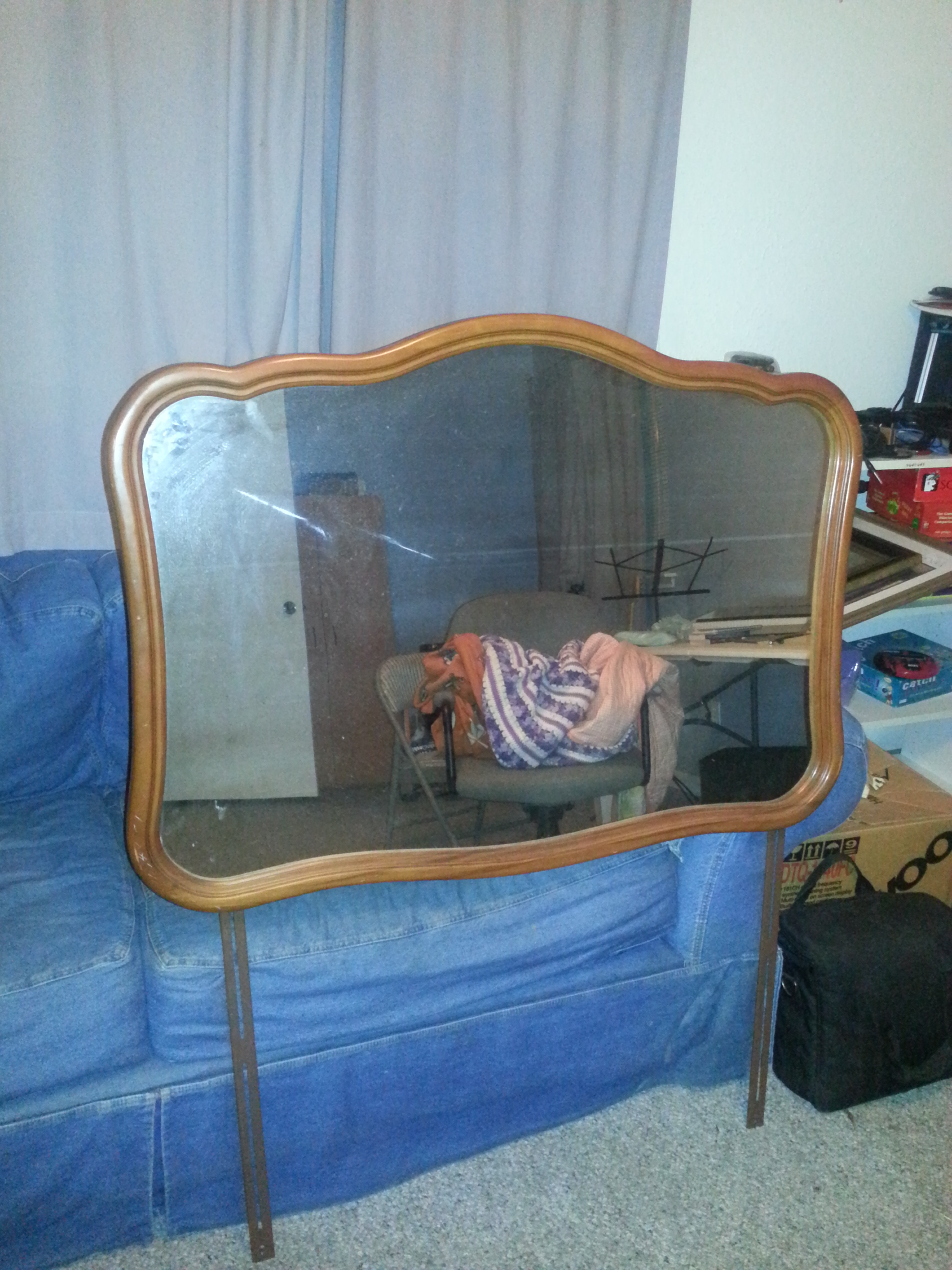This dresser was given to us by my grandmother.  As best I can tell, it's all original.  There are no chips or cracks in the wood.  The mirror has a small spot where the stain has rubbed off from being in storage, but aside from that, it's in perfect condition.  Not sure when it was built, but I'd have to say in the 40's or 50's.  Can anyone provide some insight about it, and what it may be worth?