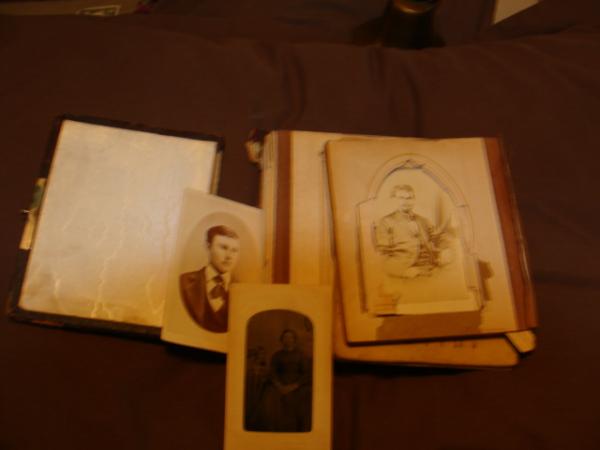 This is an old album, it has old slated pictures 1800"s. Also in this book is a war ration book two identification of the united states of america filled out in original handwriting.1942.i have 5 of these papers.