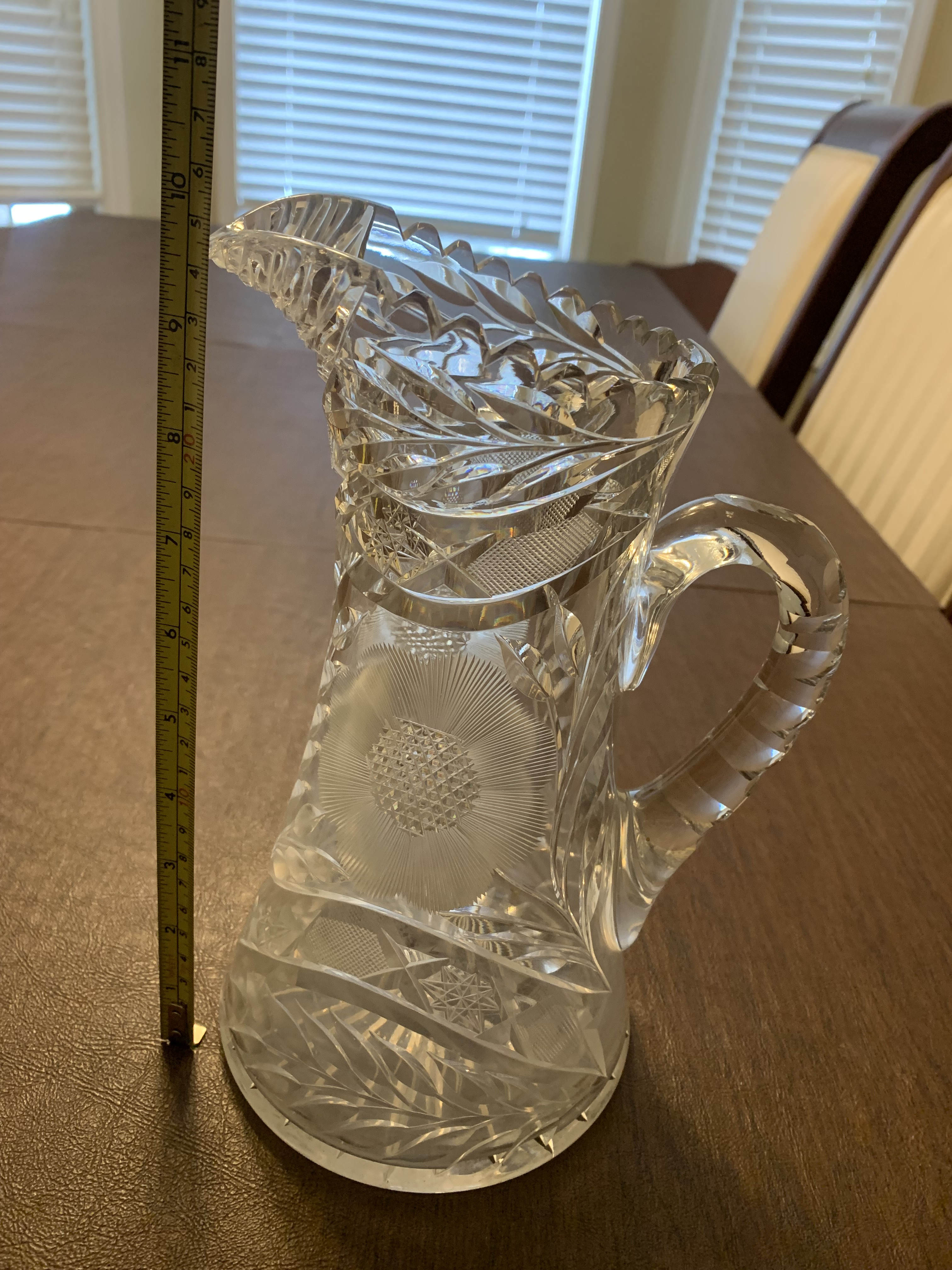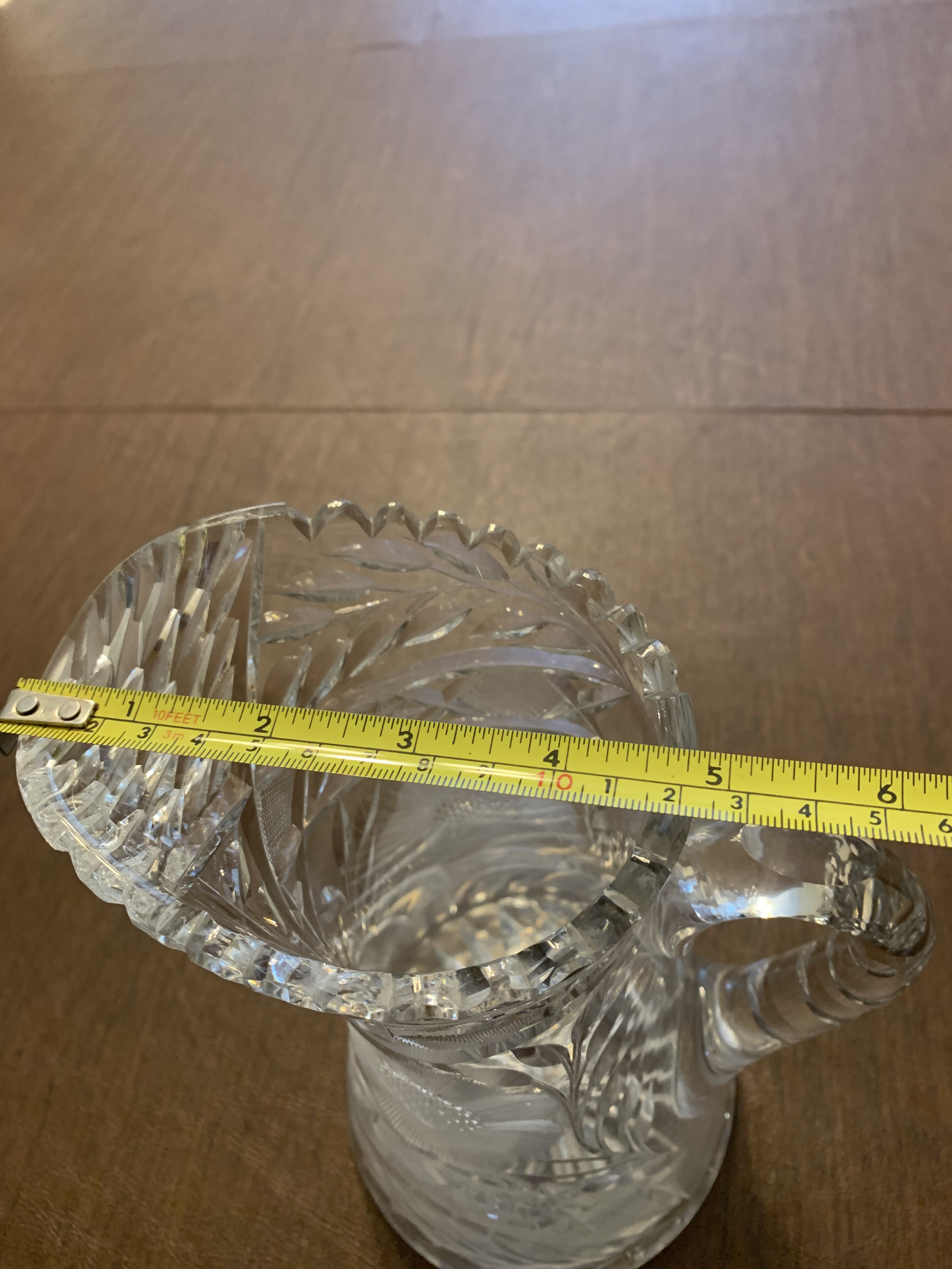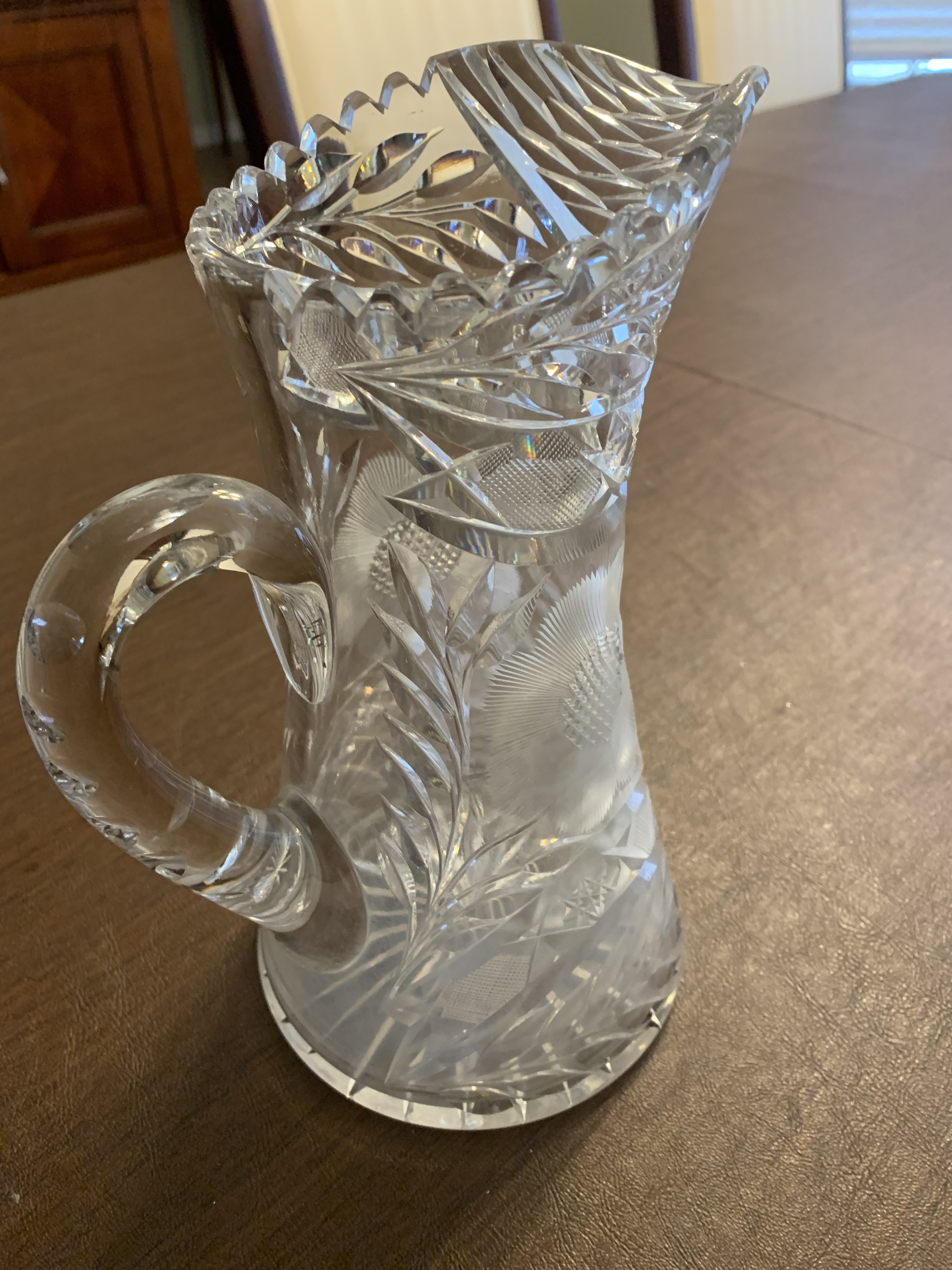 Description vintage brilliant cut glass pitcher, height 9.8 inch, width of 4.7 inch, no chip no crack