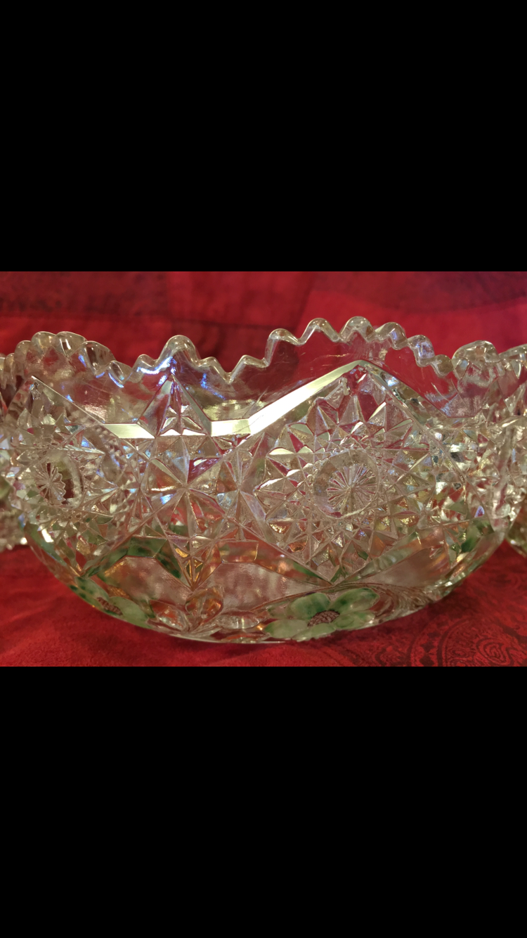 Need help with identifying these items. Would like to know approximate worth. These items were recently handed down to me after my grandmothers passing. I remember seeing them in my great grandmothers china cabinet. Was recently advised that they may be American Brilliant Period Glassware, c1913, "Flower and Diamond" pattern?