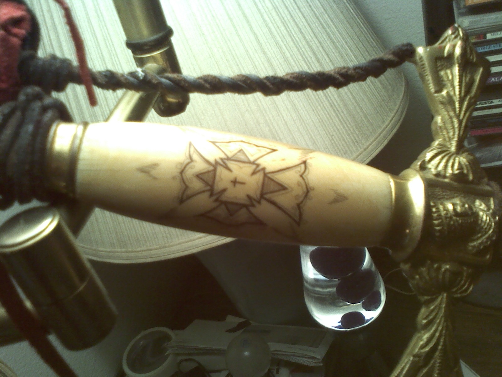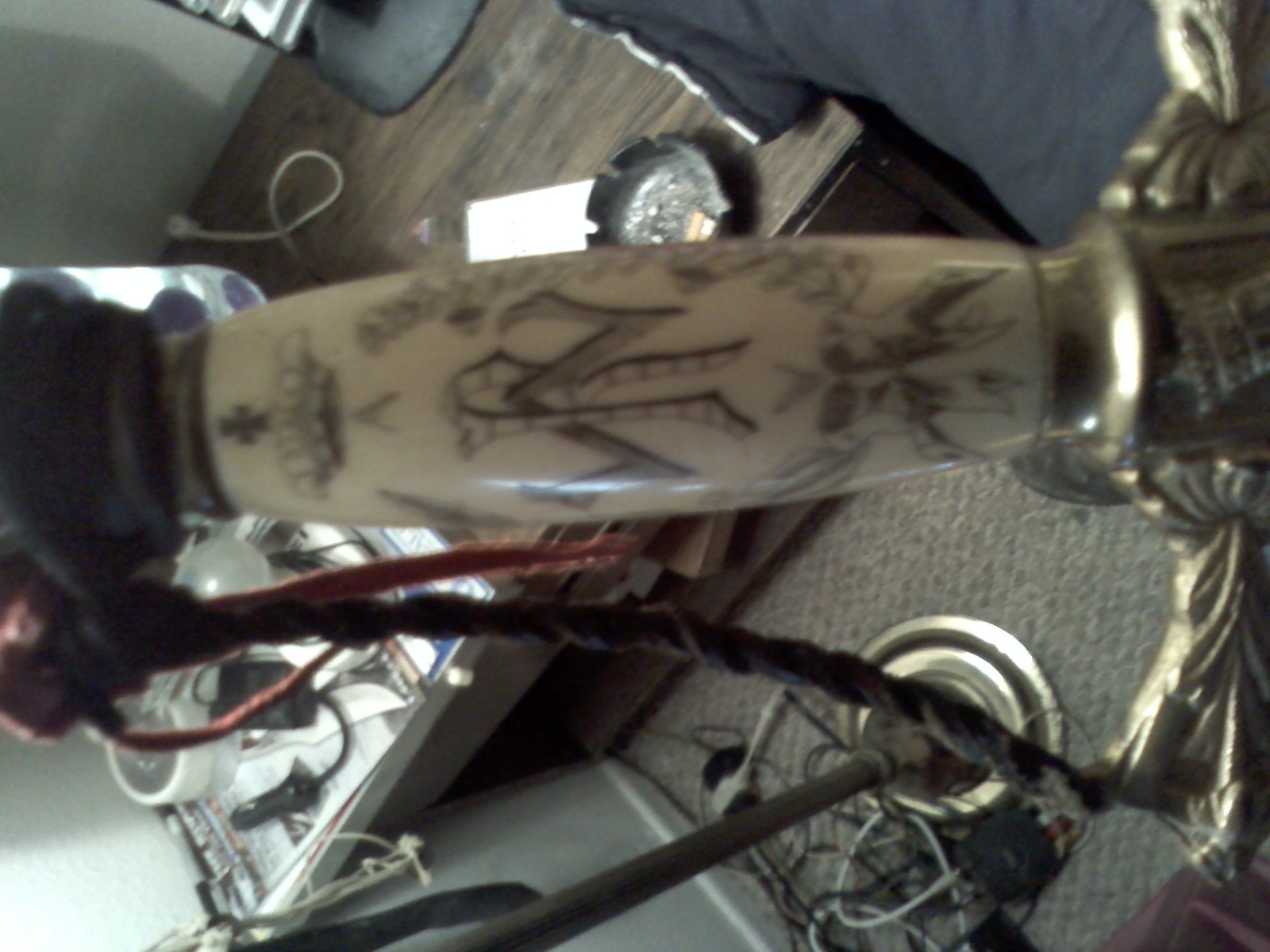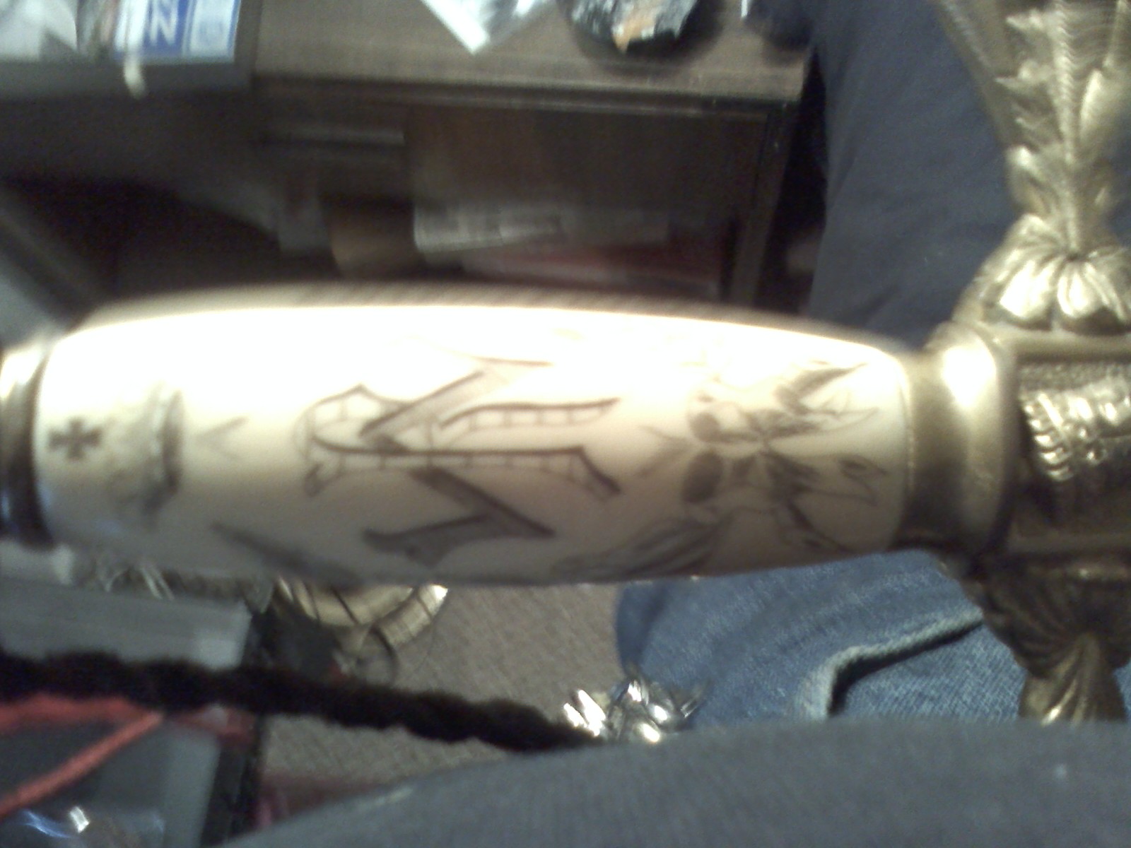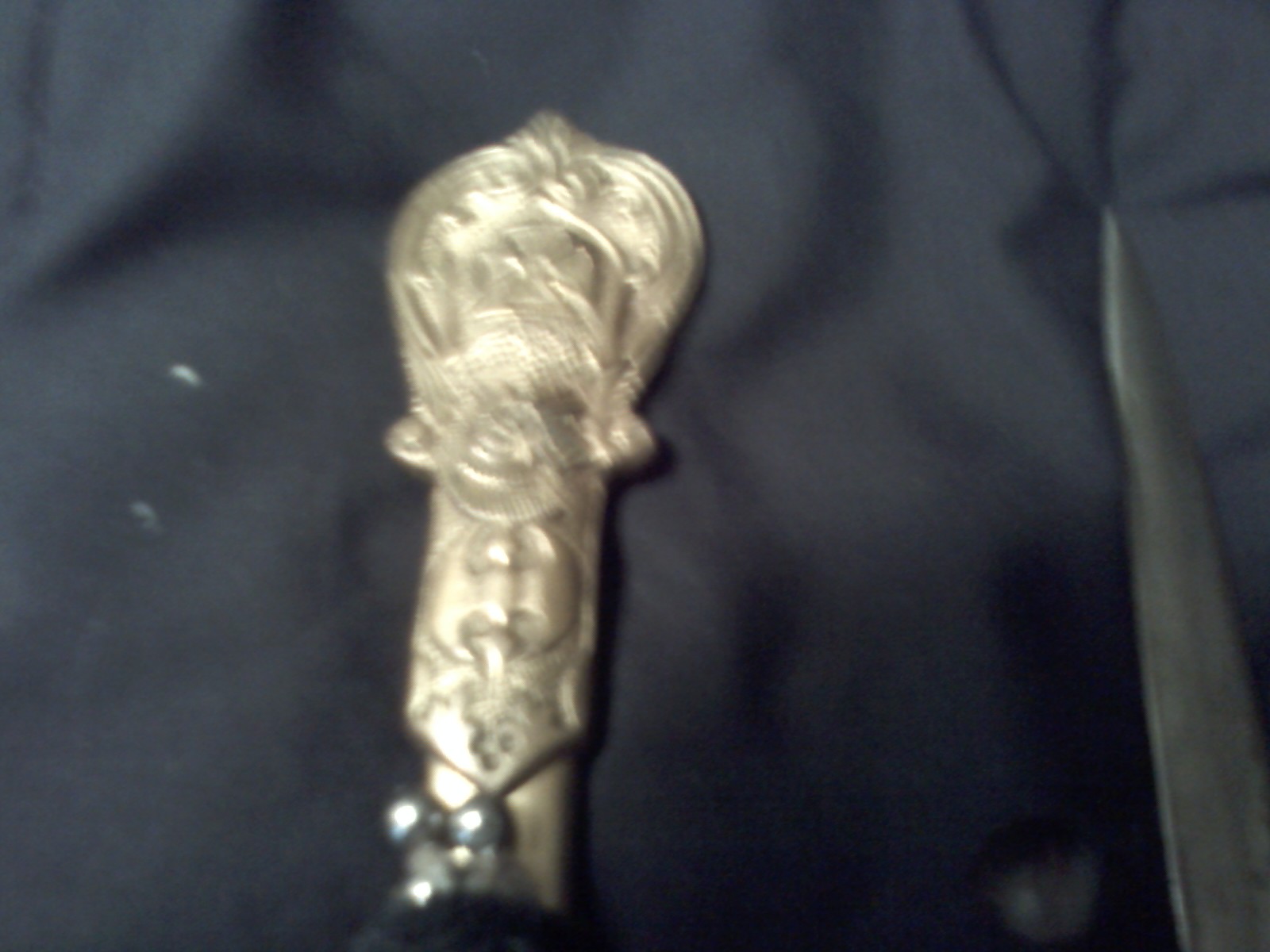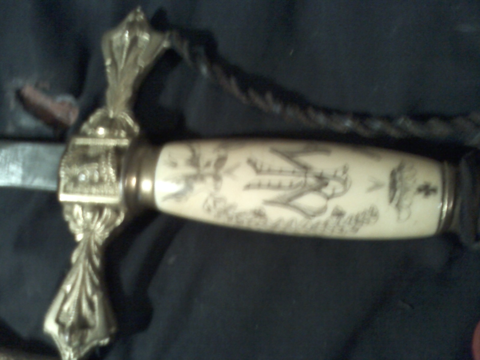 Blade & Sheath engraved with ornate designs inlay has red stones in cross crown, very little wear ,