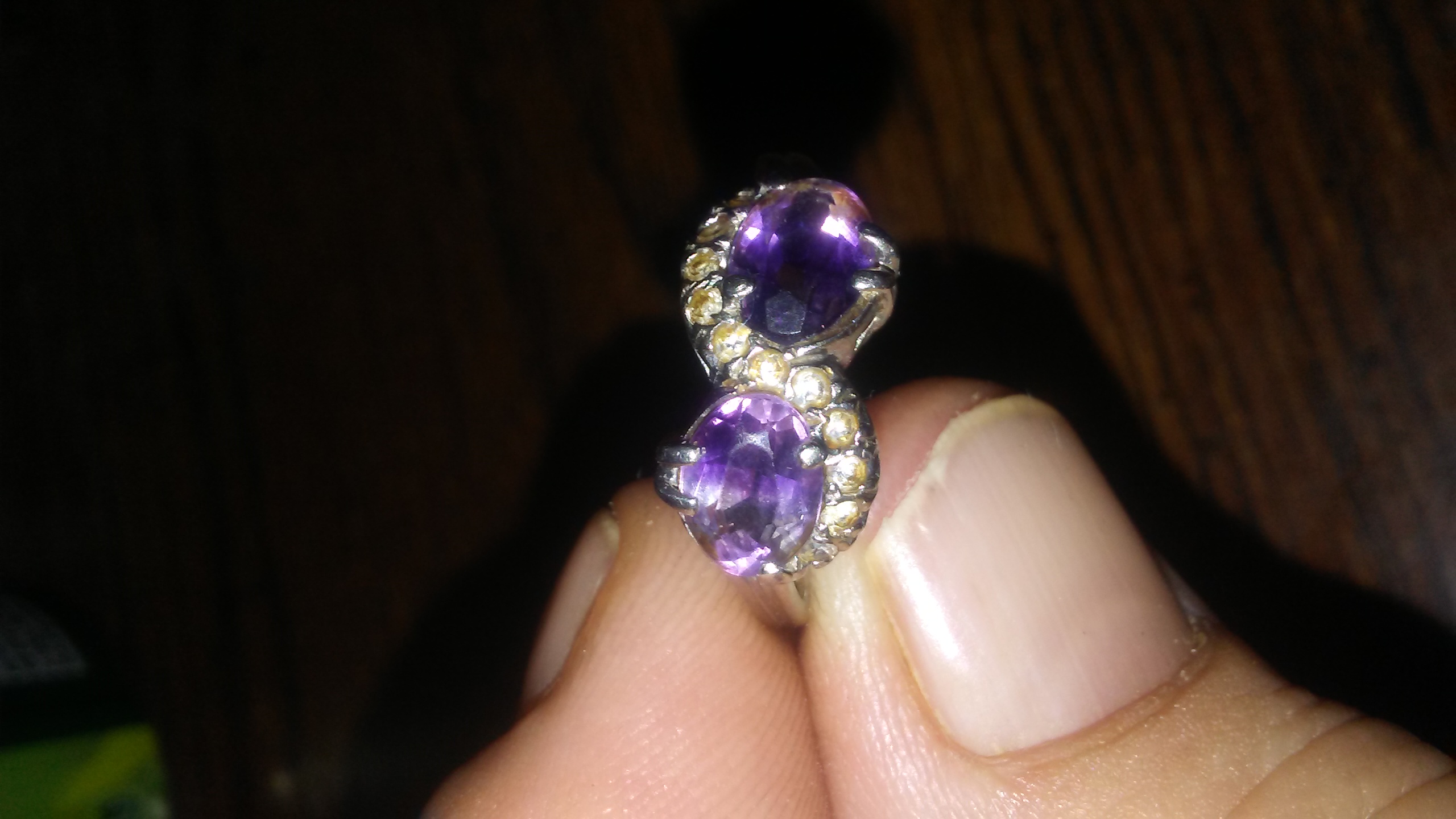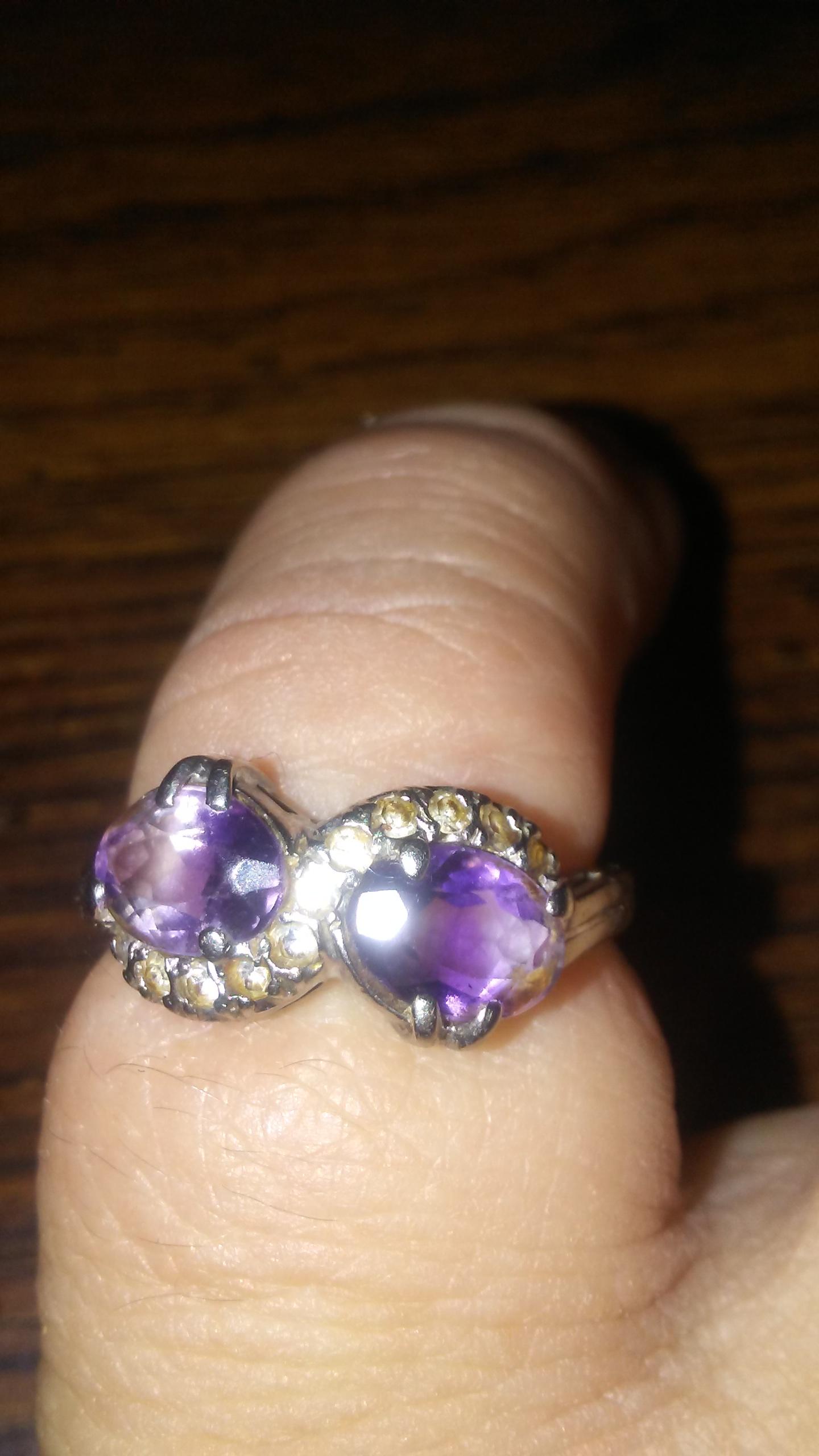 10k platinum 2 large amethyst stones 12 diamond cluster