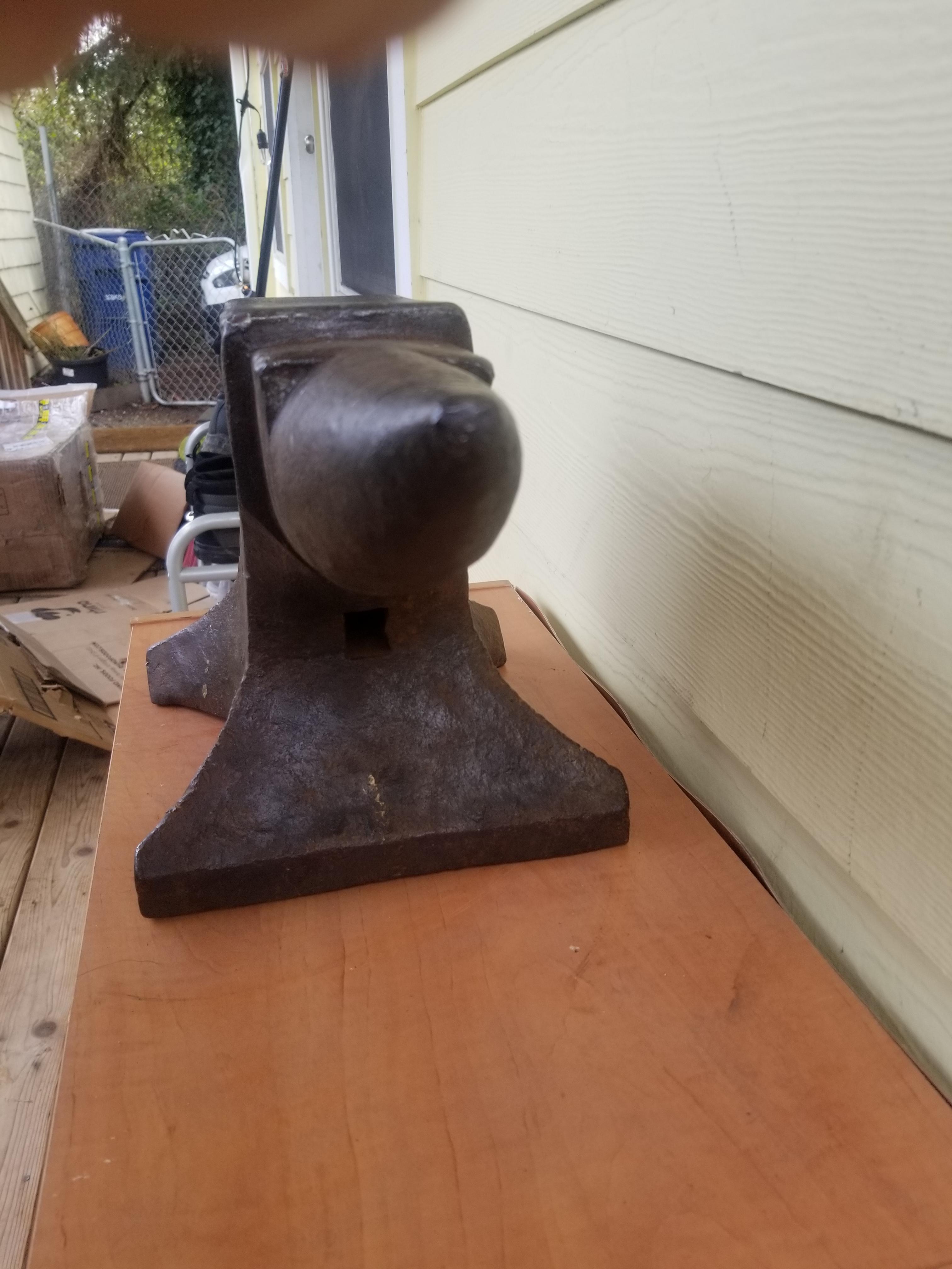 Antique anvil is broken, heard they broke anvils in the civil war. Manufacturers label is worn but legible.