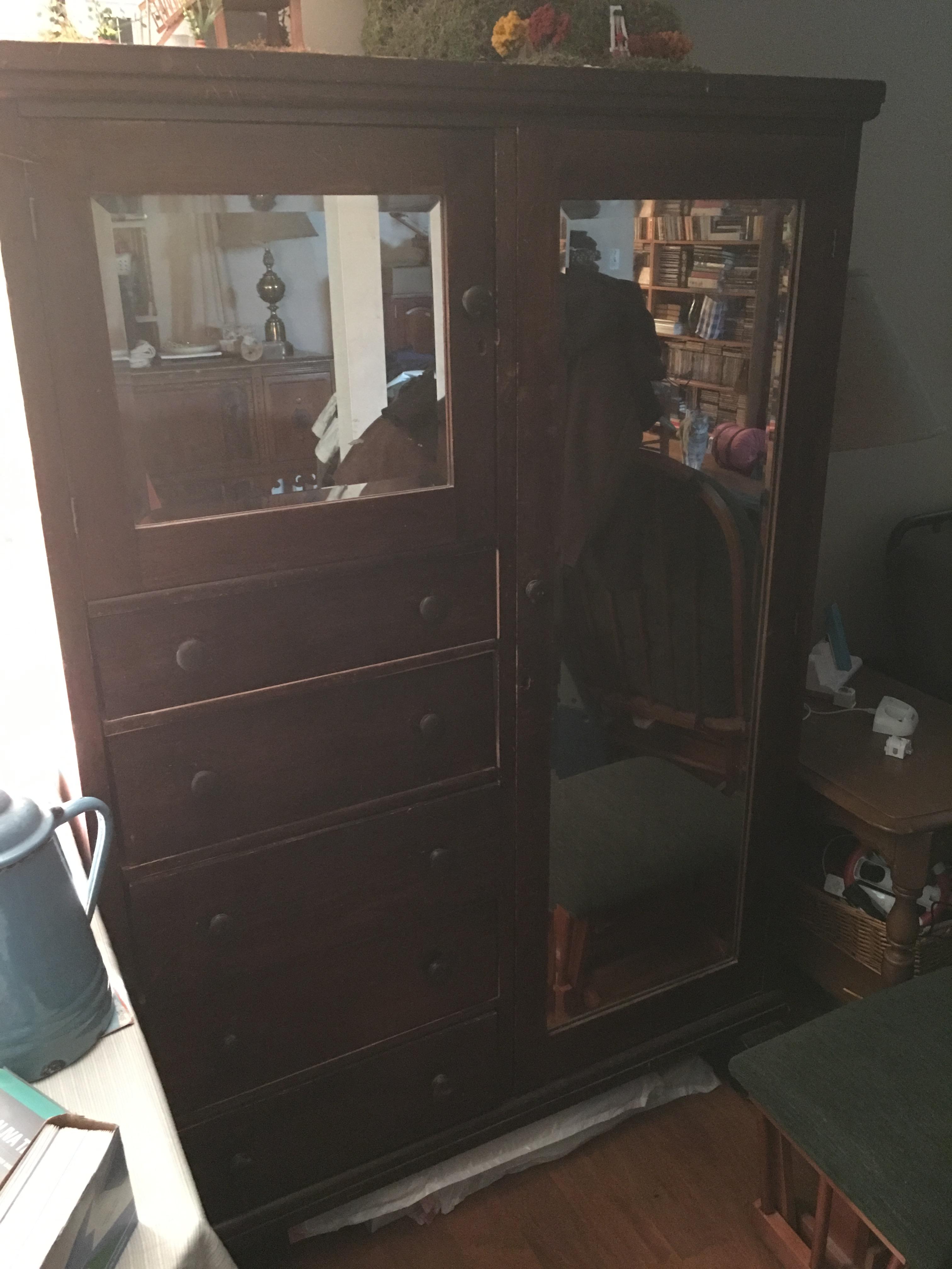I was told this is a civil war Armoir.  That most of them were burned during Sherman's march across the south.  It is extremely heavy.  Any opinions?
