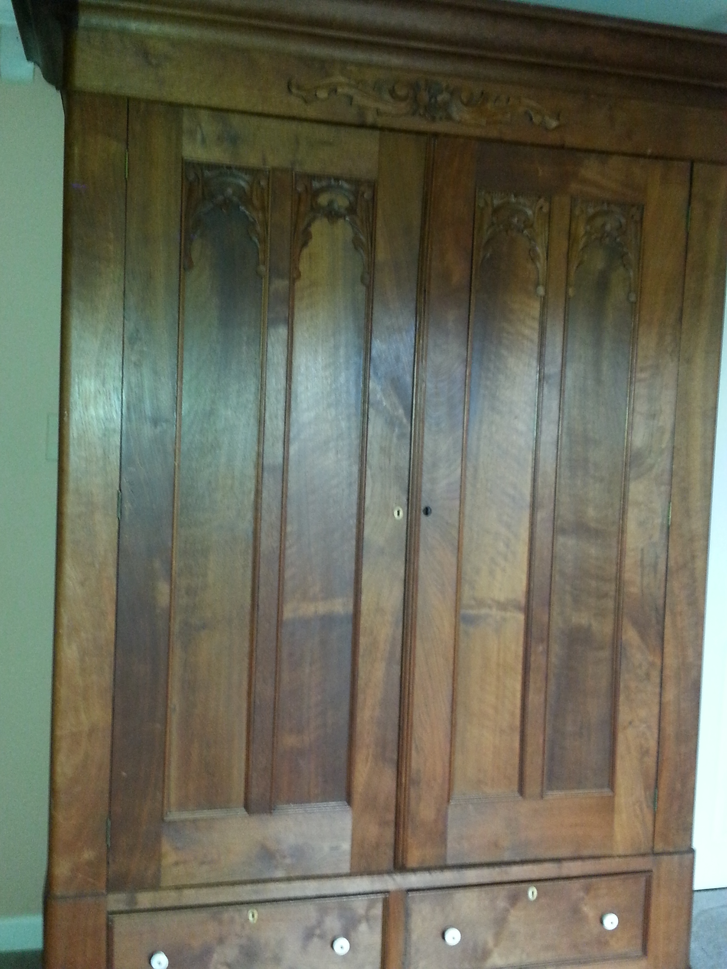 I would like to find out where this armoire originated, how old it is, and what is its worth today.