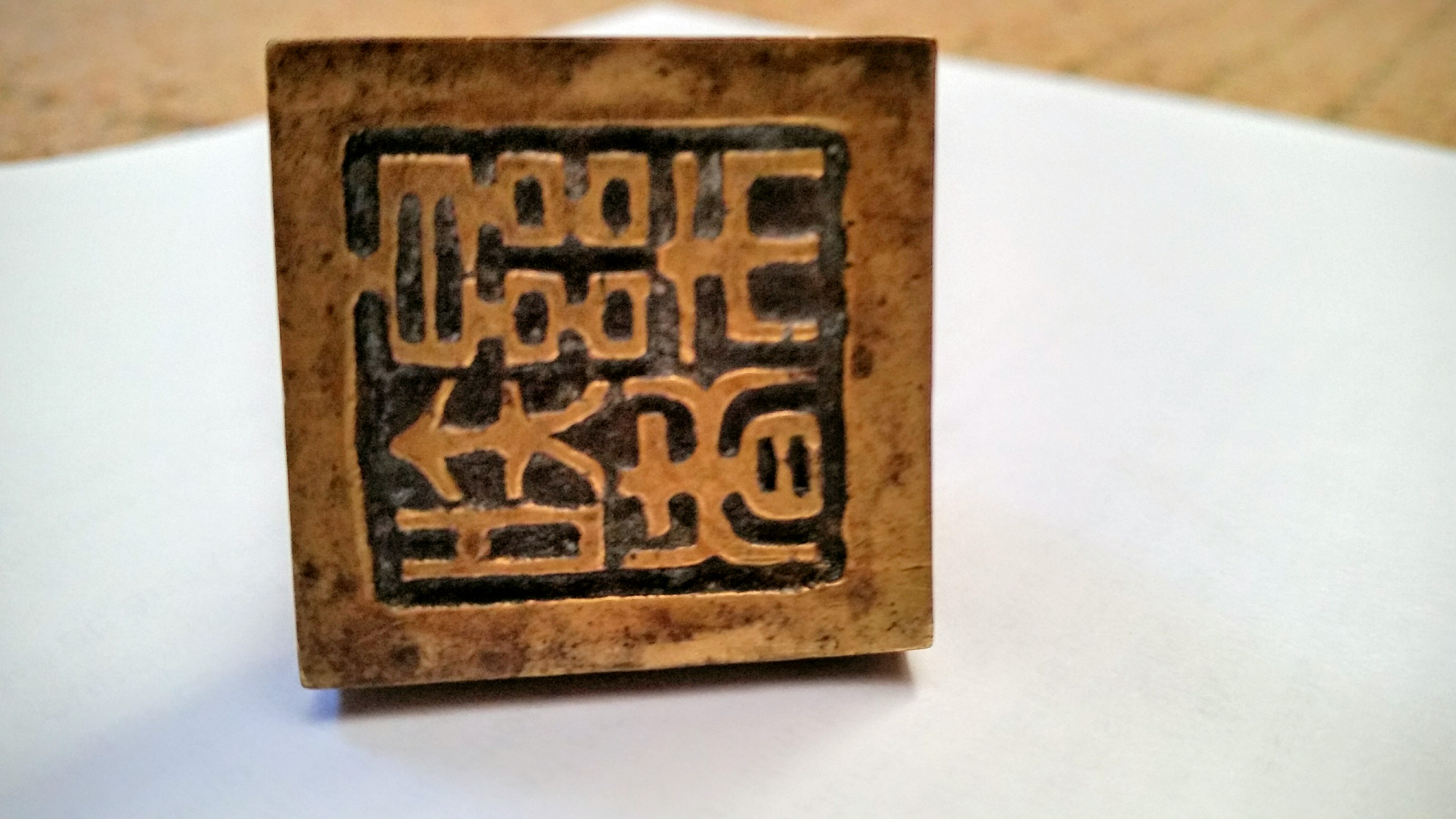 As I understand the story, my grandfather aquired this frog in Japan while stationed in the Phillipines during or after the Spanish American War, but not 100% this is accurate. The frog measures 3" square by 3.5" tall, and I have no idea what the inscription reads on the bottom.