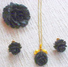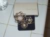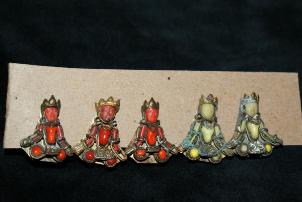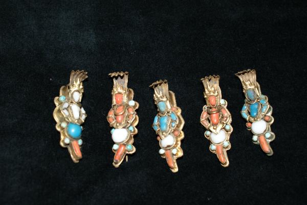 Fertility brooch and Buddha earrings. Made with brass and turquoise stones are set in the design.