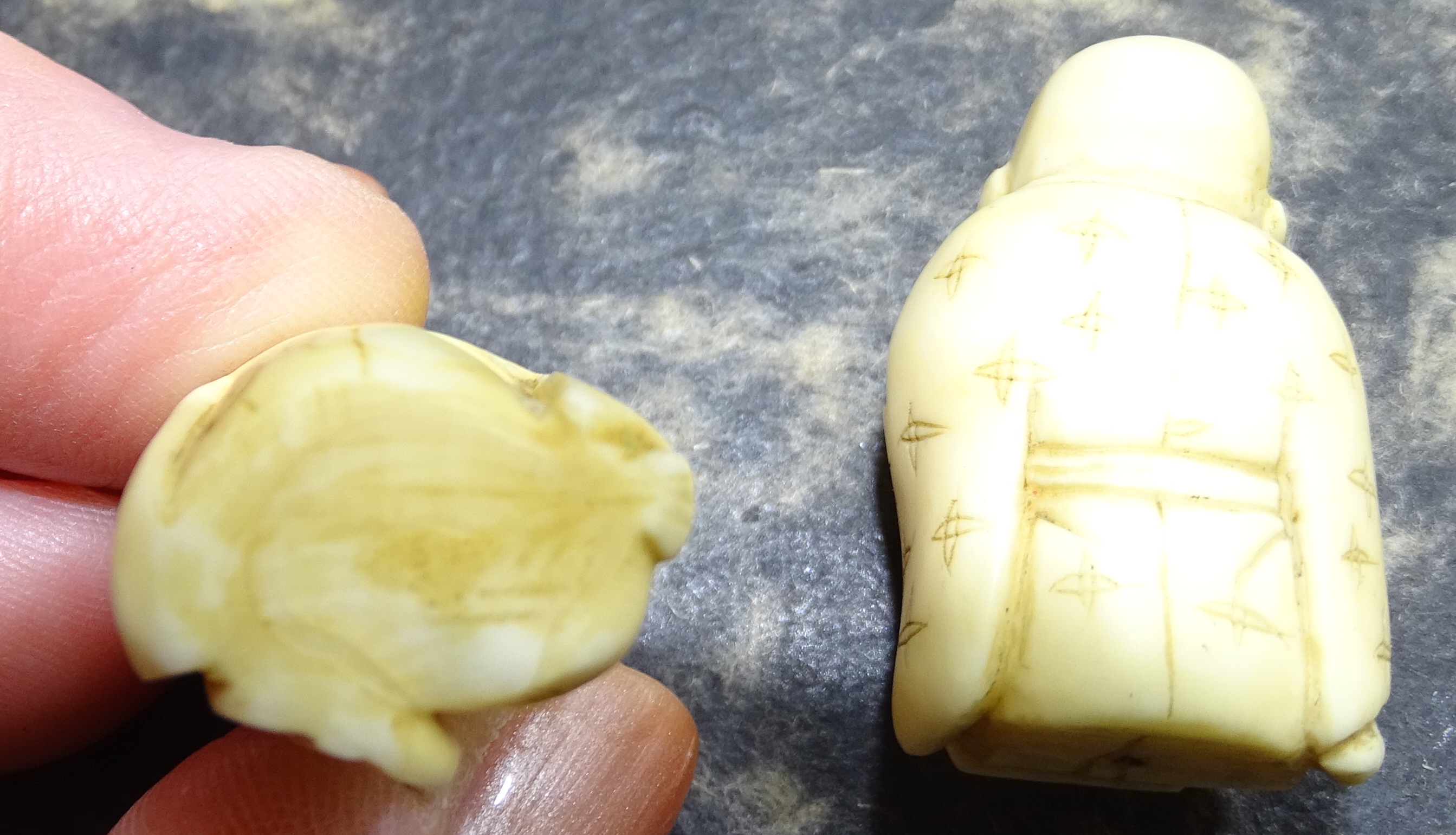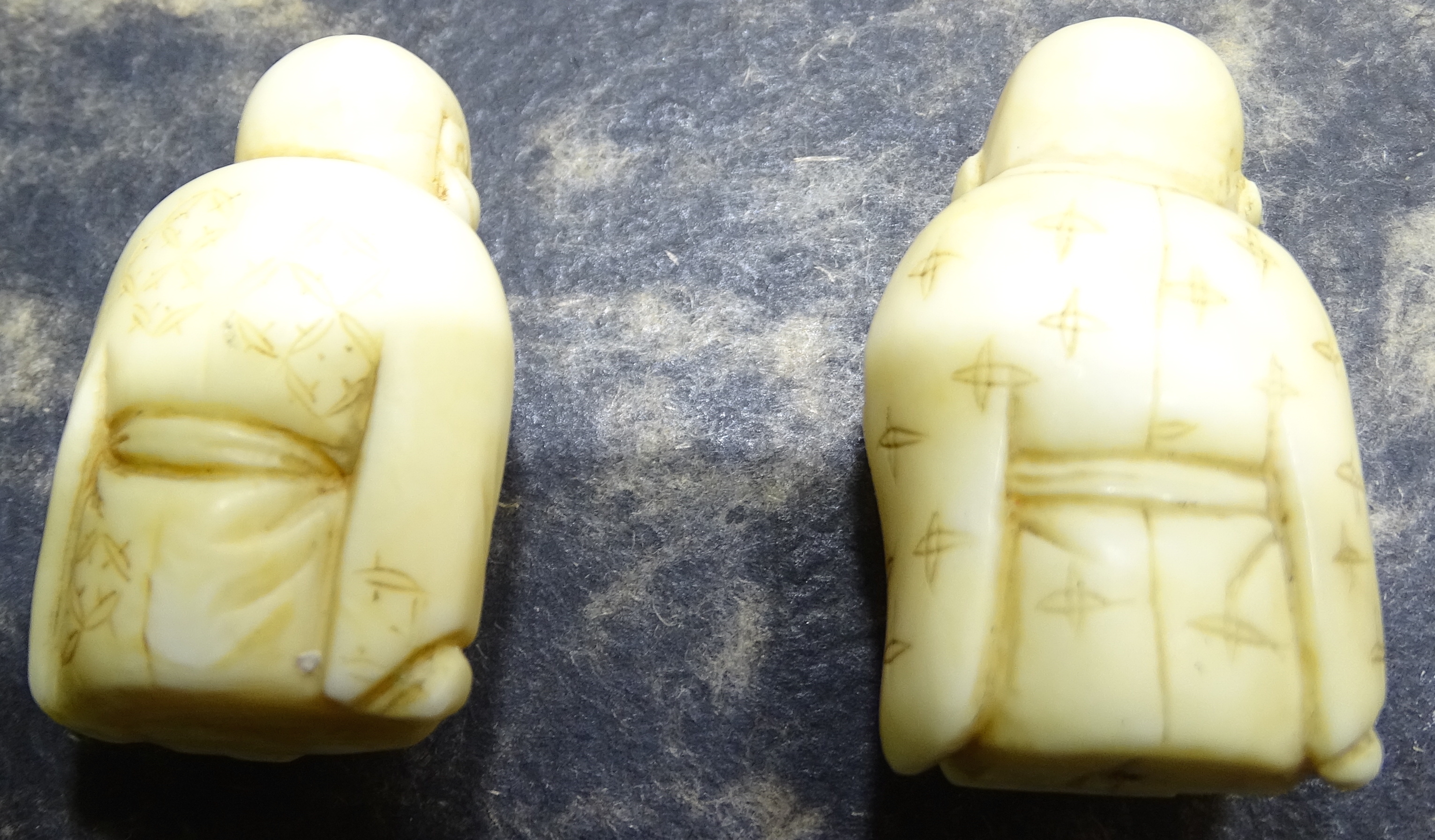 Two small ivory carvings (positive Schreger lines) of asian men?.