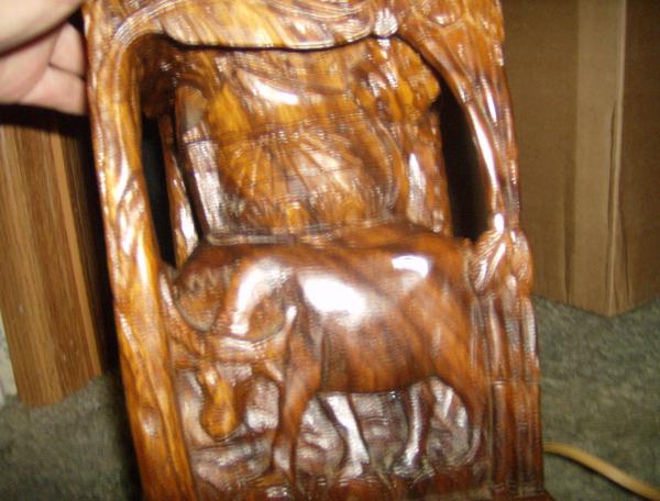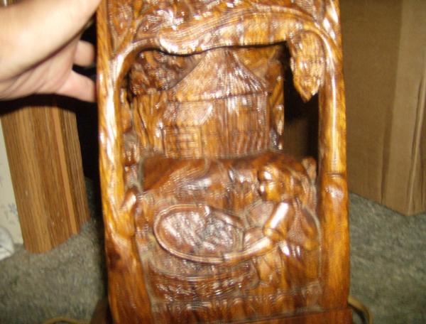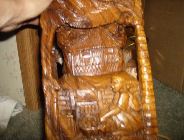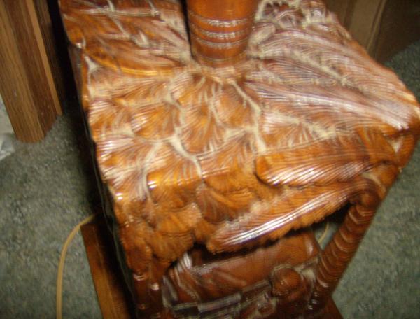 Antique Asian Wood Carved Lamp w/Capiz Shade