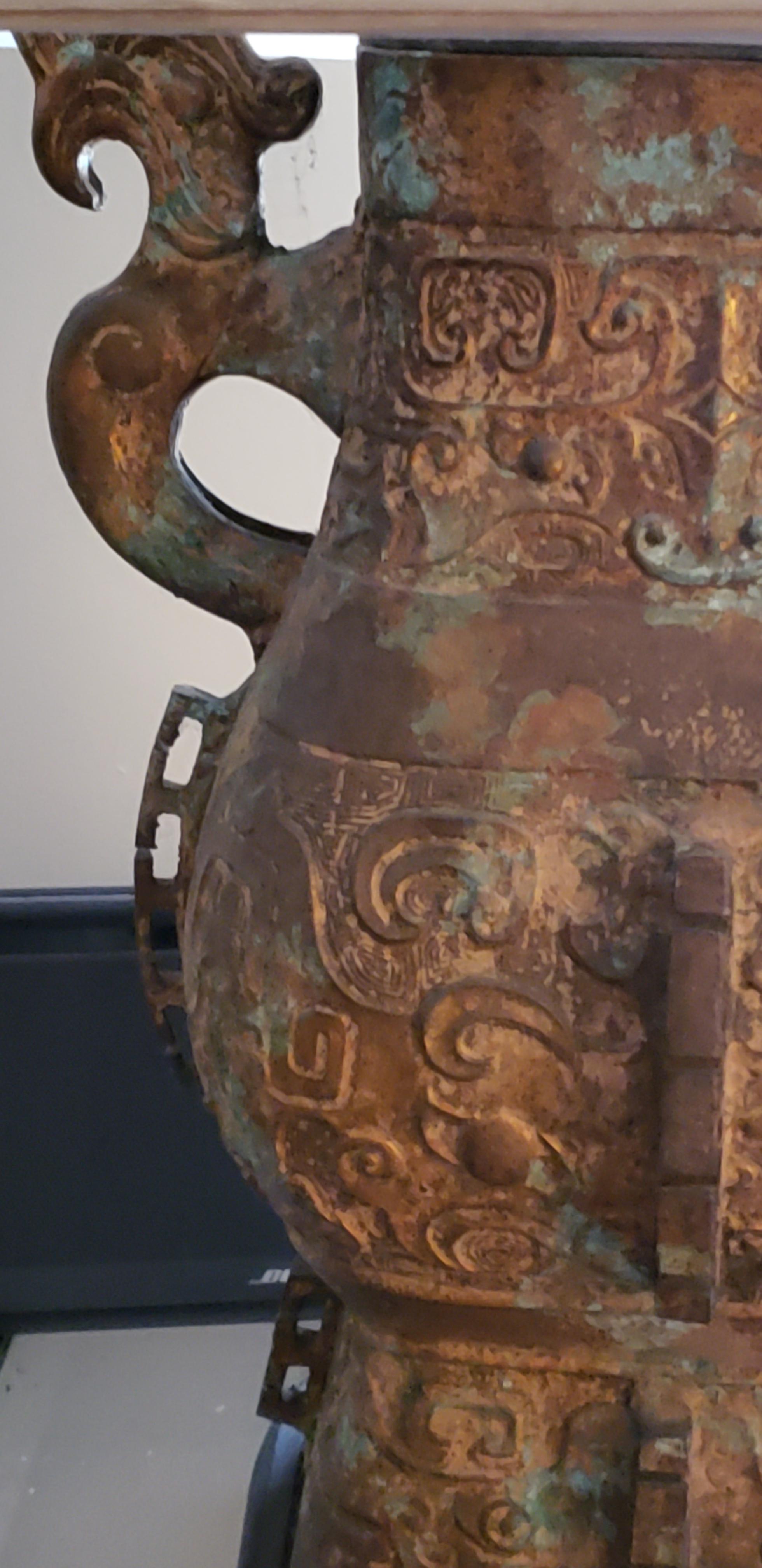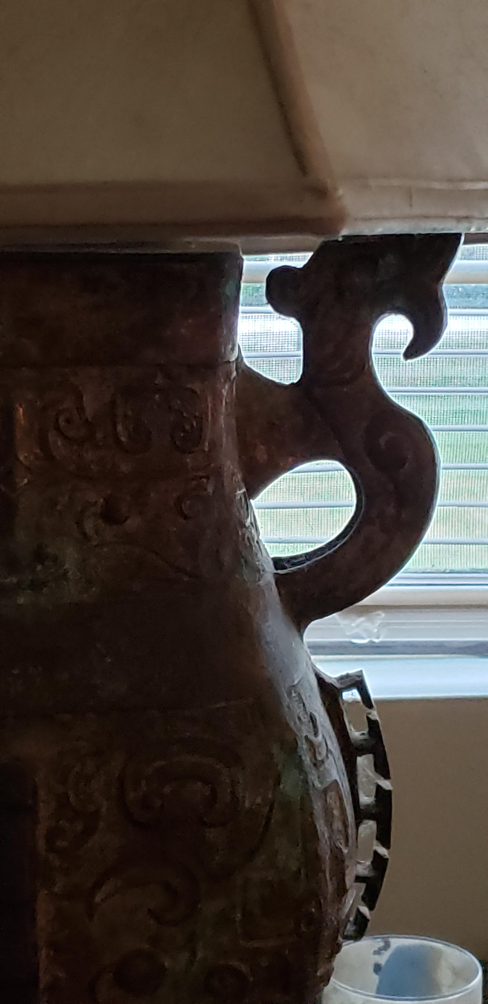 Old very old ...looks like Myan, or Aztec ancient symbols on this gorgeous extremely heave lamp