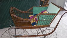 This is an antique baby carriage. It belonged to my Great-Great Grandmother during the late 1870's, quite possibly made by Wafefield Ratton, or the Heywood Brothers and Company. There is a lovely carving on the inside and we have made new covers for the cushions. The only other marking is that of a number on the underneath, 170. It has been passed down through the generations and is amazing condition for its age. Closer pictures are available for email. We are looking for a buyer.
