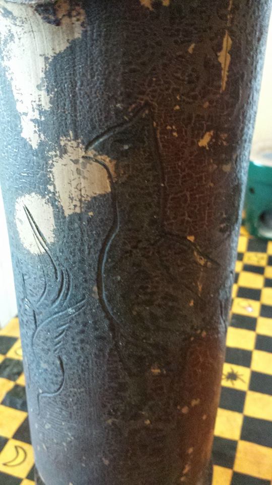 This appears to be made of bamboo. opens on both ends, although has a divided middle and has several pictures on it. not sure what it is or was used for.